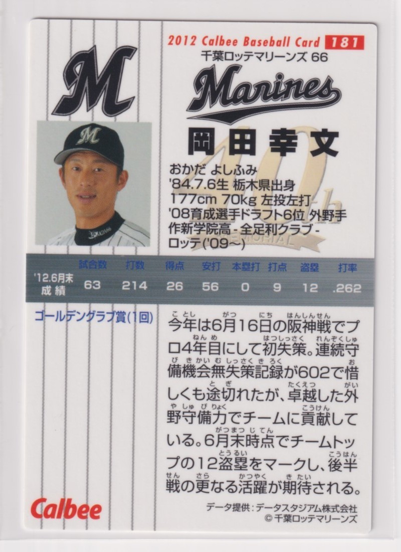 2012プロ野球チップス第3弾 181 岡田幸文(ロッテ)