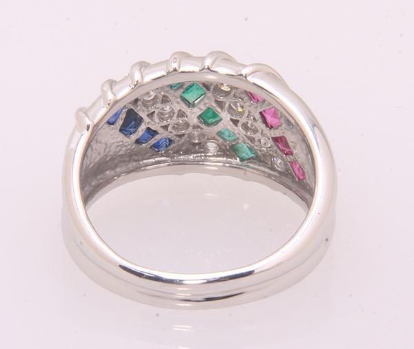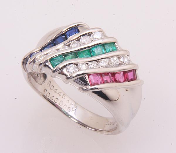 《質屋出品》Pt900★4大宝石のデザインリング★k-4037