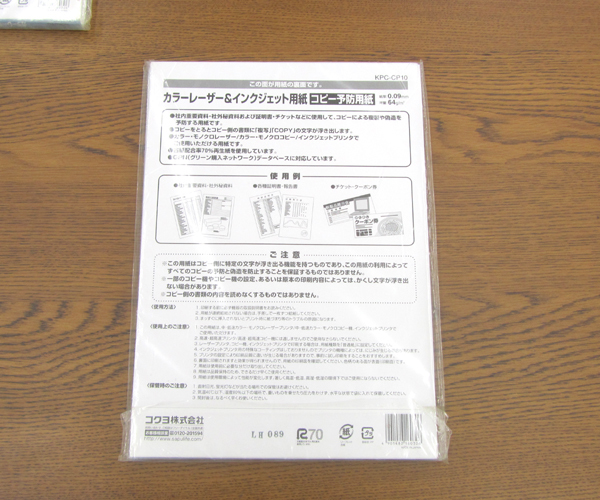展示未使用品 コクヨ コピー予防用紙 A4 カラーレーザー&インクジェット用紙 KPC-CP10 5セットで500枚