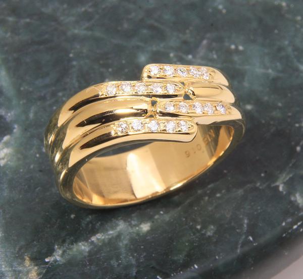 《質屋出品》K18★天然ダイア0.16ctのデザインリング★k-3768