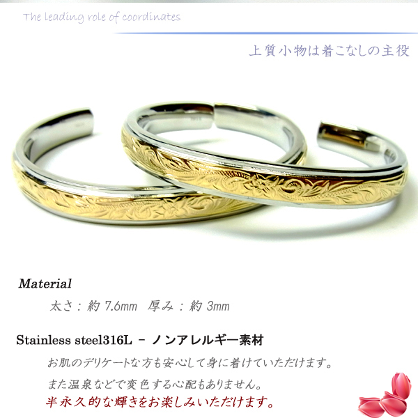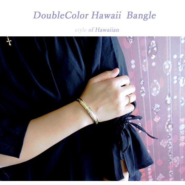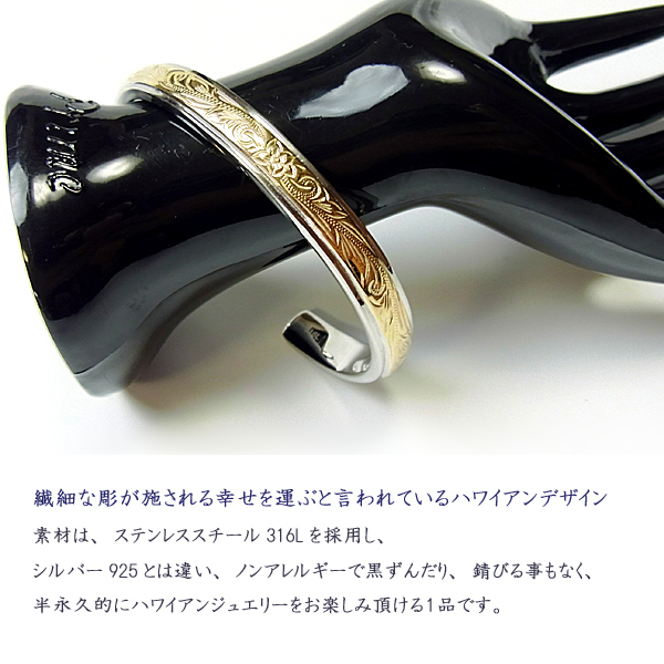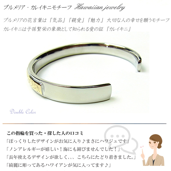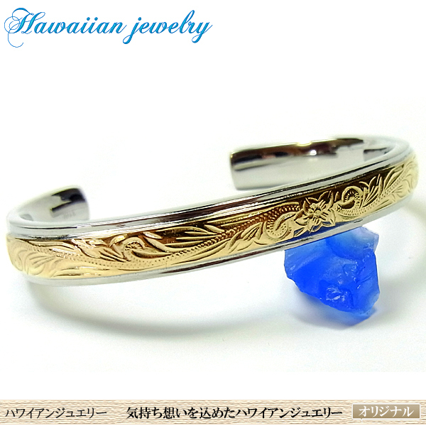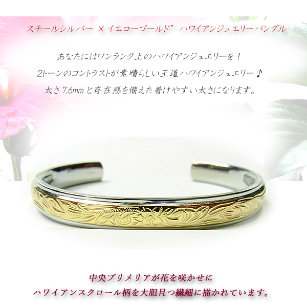 ★人気★ハワイアンジュエリー★金属アレルギー&温泉&海水浴OK★ステンレスバングル★シルバー&ゴールドコンビ★プルメリア&カレイキニ★