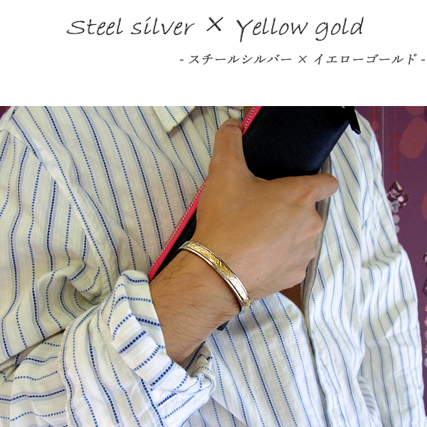 ステンレスバングル ゴールド&シルバーコンビ プルメリア&カレイキニ