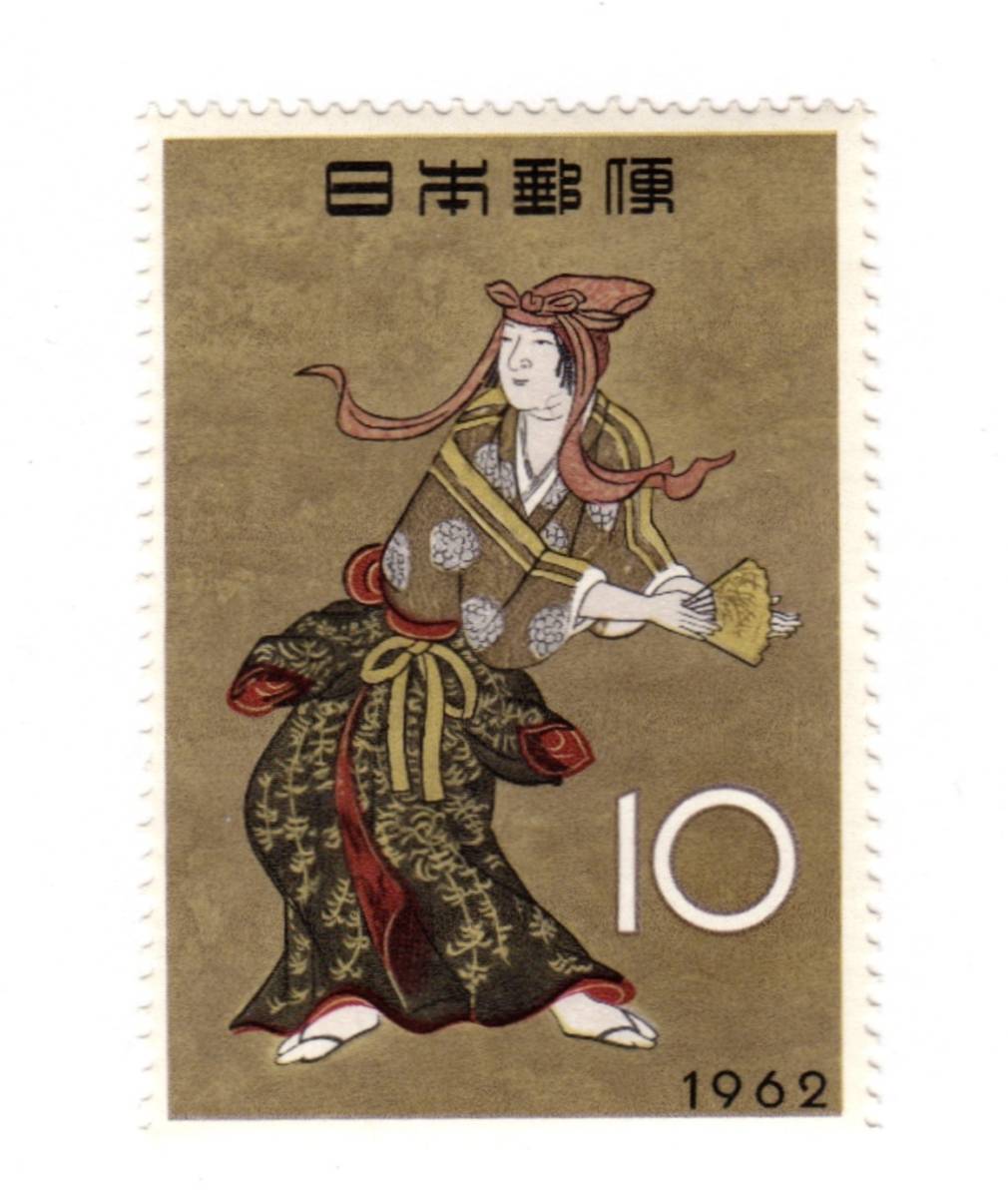 昭和37年1962「切手趣味週間/花下遊楽図より・狩野長信画」10円切手・未使用【送料無料】「熊五郎の切手」00800293