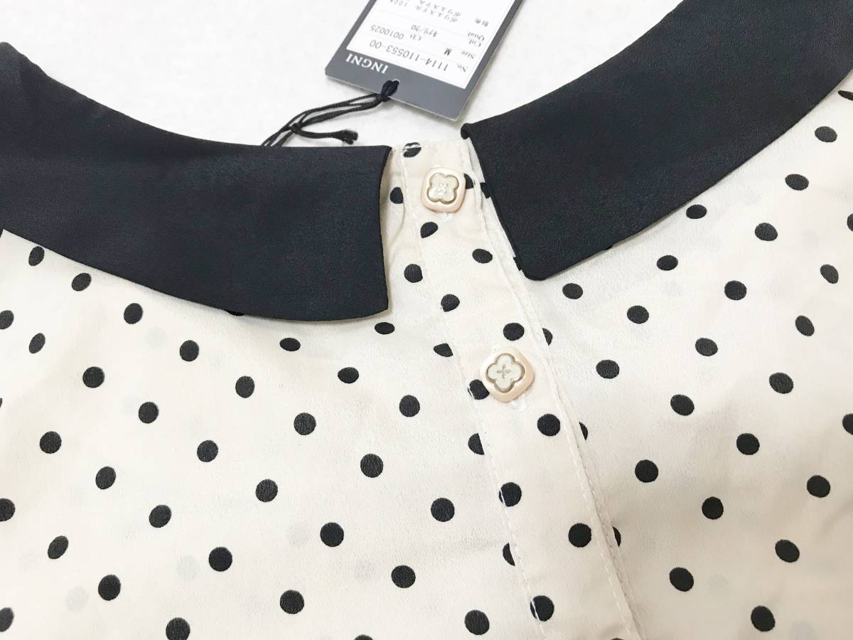 | INGNI イング 定価:3,990(3880) サイズ表記:M お色め:キナリ/黒 系 ポリエステル100% ●平置き採寸●(参考) 肩幅(肩線~肩線)/約35cm 身幅(脇下)/約44cm 袖丈/約22.5cm 着丈/約60.5cm 未使用品ですが、自宅保管にご理解頂ける方のご入札ご検討願います。 ◆細かい点(ご利用に問題のない程度の小さな傷・匂い・汚れ・シワ等) は素人検品の為記載漏れがあることをご理解願います◆ ◆洋服のようなものは保管・発送時のしわをご理解ください。 ◎照明・パソコンの色彩環境等の違いから 掲載の画像と実物の色味が異なる場合がございます。 ★発送について★ ◆全国送料無料・・・日本郵便◆ 追跡のある方法でお送り致します。 ★自動メッセージで発送連絡がされます。 別途こちらより発送の際のご案内はしておりません。 ◆土日祝・年末年始・GW・お盆期間はお休みしています 発送対応はしておりません。◆ ◆平日11時頃までのご入金確認で当日発送を心がけておりますが 対応出来ないときもありますので ご入金確認後の翌日~3日程度の発送でご理解ください◆ ★長期のお休みは自己紹介にて記載しております。 お手数ですがお急ぎの場合は一読お願いします。 | |||