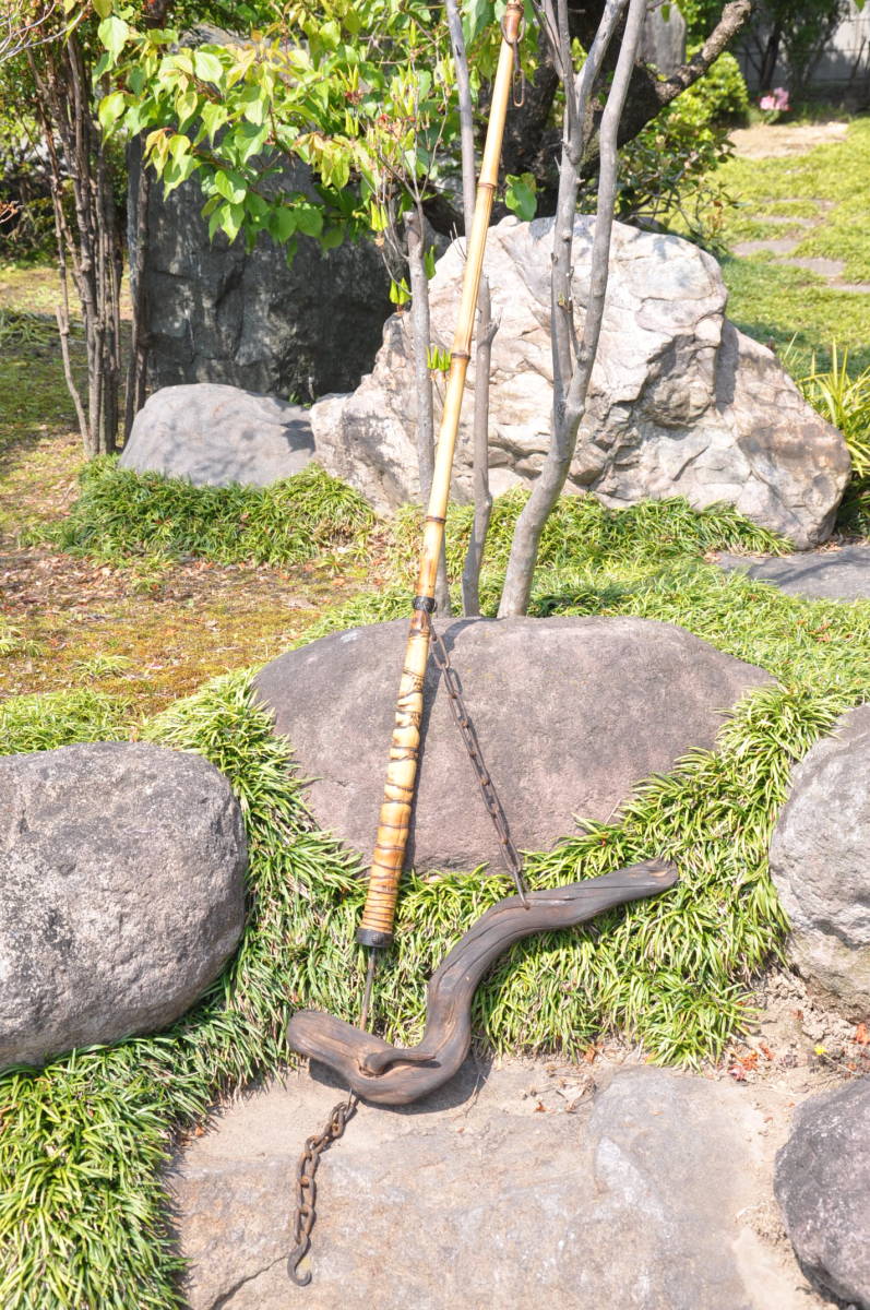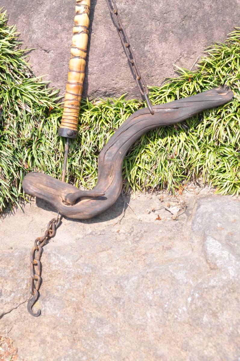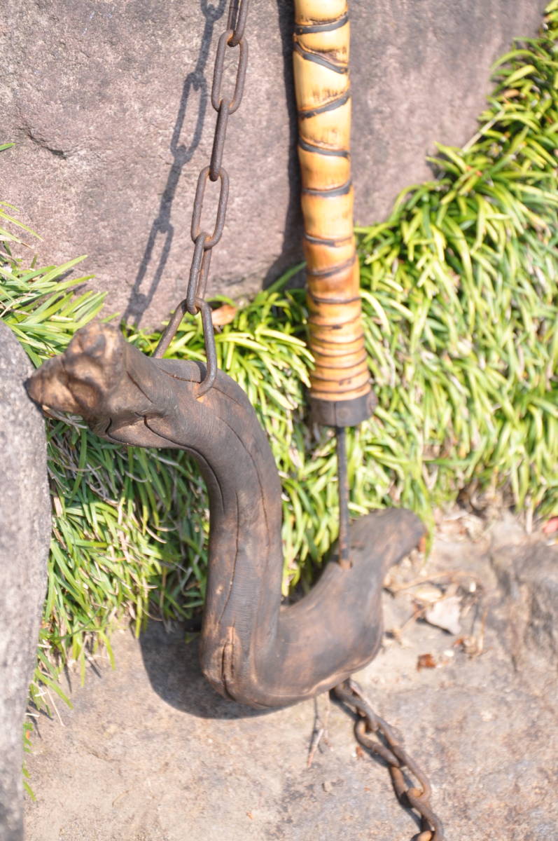 明治期の味わい古民具! 時代物 自在鉤 天然素材 真竹と流木 エステートセール!(IKT)