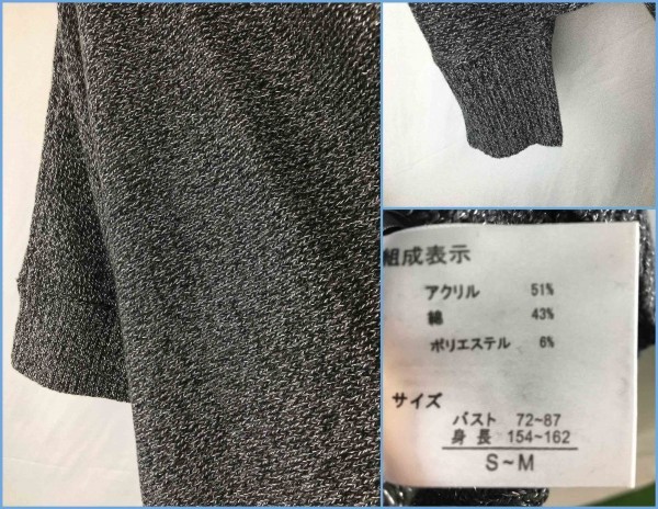 ★ 商品名 ★ ( VINO ROUGE ) 変形 ドルマンチュニック ★ 状態 ★ 新品 ★ カラー ★ 黒と灰と銀色 ★ 表記サイズ ★ S~M ★ 平置き実寸サイズ ★ 天巾 30cm 身幅 77cm 着丈 67cm 右裄丈 68cm 右手切替幅 15cm 左裄丈 62cm 袖丈 9cm 裾幅 34cm ★ 素材 ★ アクリル 51% 綿 43% ポリエステル 6% ◆ 商品コメント◆ 変わった形のお洒落なチュニック サラッとした柔らかい生地で肌触りが良く着心地抜群です! 黒と灰色の生地に銀色が入ってクールな雰囲気 ◆ 当店について ◆ ●障がい者(スタッフ)の就労支援事業所が運営しております。 ●社員がスタッフの健康状態、仕事の内容をチェックし、ミスが無いよう努めております。 ●【 検品、採寸、撮影、梱包、出荷 】等の作業はスタッフが真心を込めて対応いたします。 ●【 商品を受け取ったお客様の喜んだ姿を思い浮かべ 】誠心誠意対応いたしますので宜しくお願いいたします。 ◆ ご対応 ◆ ●営業は平日の10:00~16:00です。(土日祝は対応できません。) ※ページ内のカレンダーを参照下さい。 ●休業日は連絡が出来ませんので【 取引ナビ 】にてご連絡下さい。最短の営業日にご対応いたします。 ◆ 返品について ◆ ●お客様のご都合によるキャンセル・返品についてはお受けできません。 ●記載内容と違う場合や破損等は商品の到着から1週間以内に取引ナビにてご連絡下さい。 ◆ 注意事項 ◆ ●落札後48時間以内にご連絡をいただけない場合、落札後4日以内にお振込みが確認できない場合は不本意ではありますが取り消しさせていただきます。 ◆ 商品について ◆ ●独自のルートから仕入れた大変お買い得なアウトレット商品です。 ●展示品やサンプル品、在庫処分品、タグカット品、訳あり品(小傷やほつれ)等を格安で提供しております。 ※訳ありの場合、箇所を商品説明、または画像でお伝えいたします。 ●モニター環境により、実物と画像の色合いが若干、異なる場合がございます。 ●お安く提供できるよう簡易梱包 + 最安配送方法での発送の為、衣類などは開梱時にシワがある場合があります。予めご了承下さい。 ●平置き寸法は大体の目安としてお考え下さい。タグ等が無い場合もあり、その際は素人採寸になりますので予めご了承下さい。 ◆ 発送(梱包)について ◆ ●発送は週3日を予定しておりますが、土日祝日の発送はお休みです。即日発送は出来かねますので、ご注意ください。 ※ページ内カレンダーを参照下さい。 ●お安く提供できるよう簡易梱包 + 最安配送方法にてお届けします。予めご了承下さい。 ●まとめて取引希望の方は3日以内(最初の落札から72時間以内)であれば可能です。 ●落札者様が[取引をはじめる]ボタンを押した後は同梱できません。 ●同梱の場合は配送方法・送料が変更となる可能性がございますので、取引ナビ等でお問い合わせ下さい。 ※ 上記の注意事項などを理解した上で落札して下さいますようお願いいたします。m(__)m ※ | |||