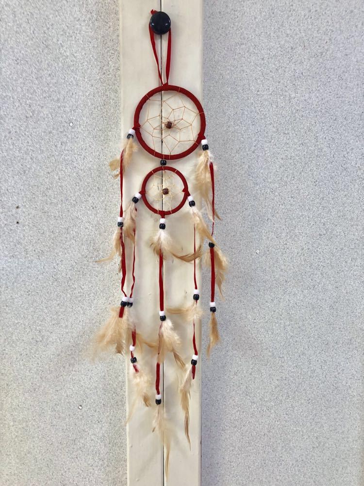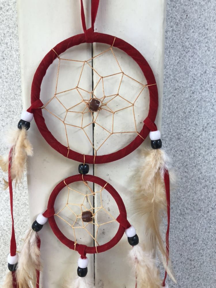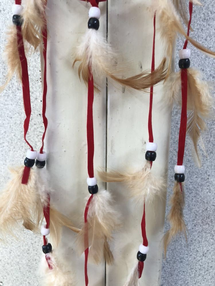 ★送料無料★ドリームキャッチャー レッド 赤 約H50cm ハンドメイド お守り 魔除け 羽 インテリア インディアン ヒッピー アメリカン雑貨