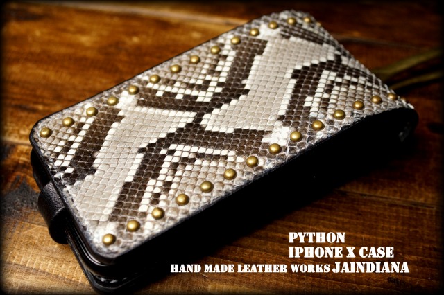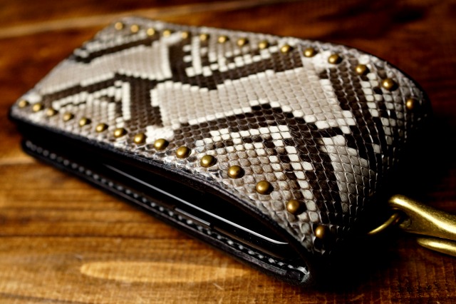 ハンドメイド パイソンiPhoneケース スタッズ フック