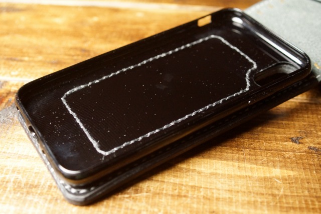 本体収納部はTPUケースを使用し、革に縫い付けてあります。