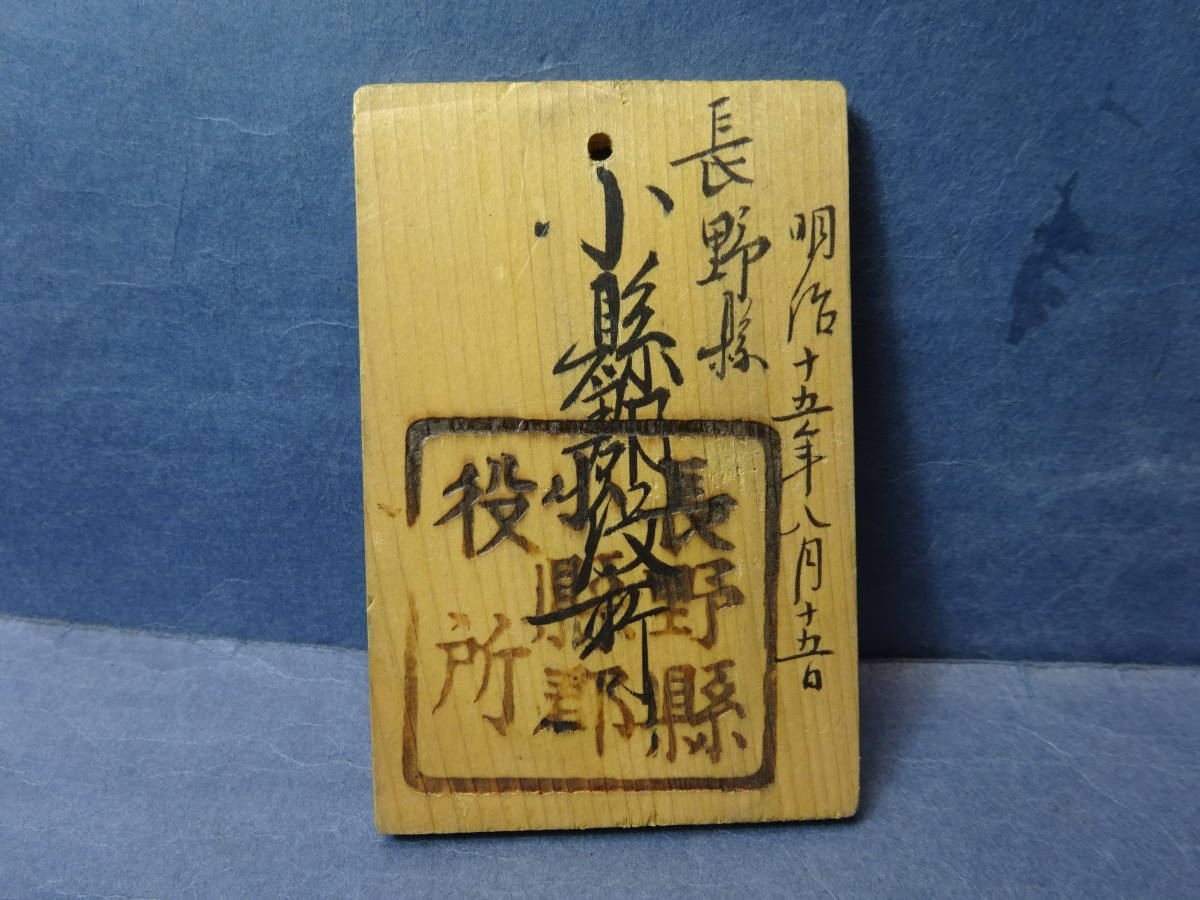 小売商の古木札 鑑札 信州信濃国長野県 小縣郡役所 明治15年 「小売商」 歴史産業資料 (4)