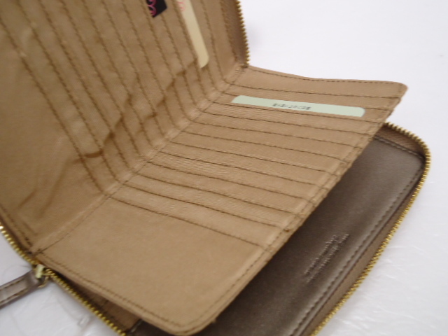 【KCM】SIF-399★新品未使用★【mono amicus/モノアミカス】カードケース 手帳型 ラウンドファスナー イントレチャート ゴールド