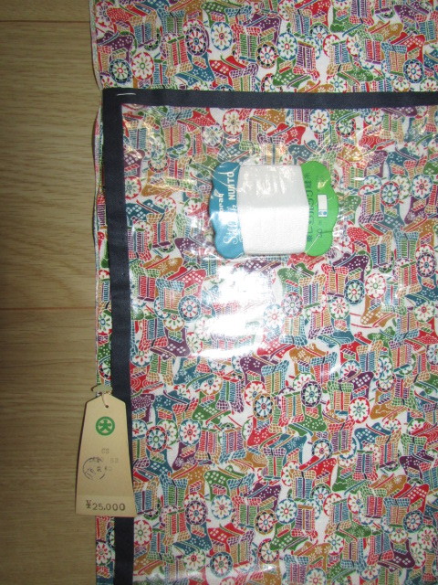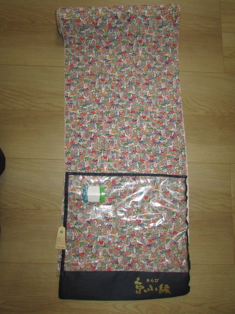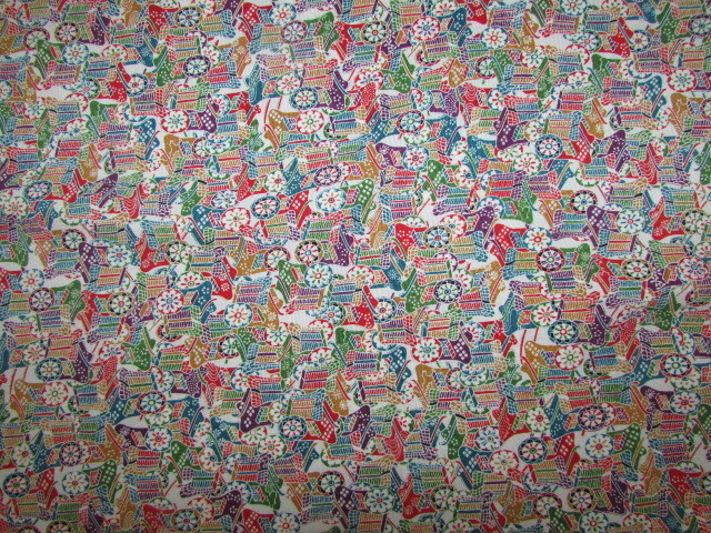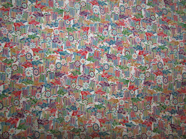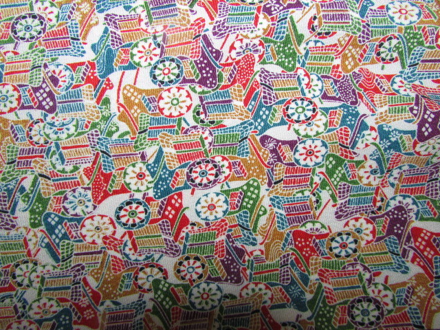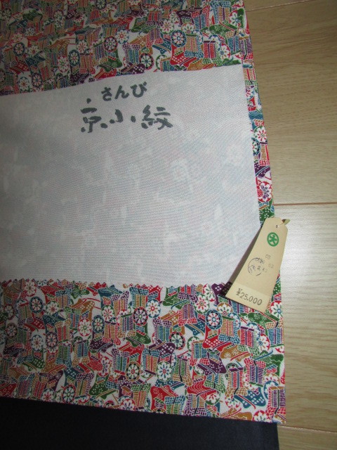 500円値引き(着物屋・蔵出し)(古布・さんび京小紋・御所車模様未使用着尺反物)当時お値段・25000円