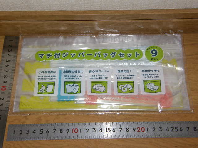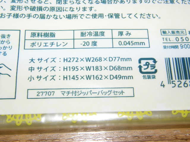 新品★マチ付き ジッパーバッグ.セット★大中小各3枚★約27×27㎝/19.5×18.5㎝/14.5×16㎝