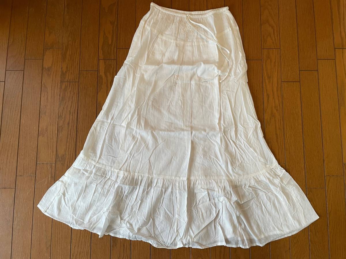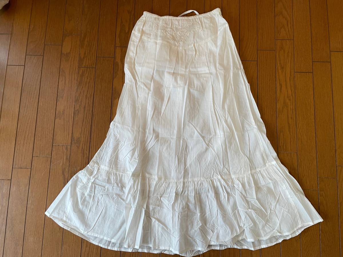 メルベイユアッシュ綿ボイル素材 ハンド刺繍ロングスカートです。