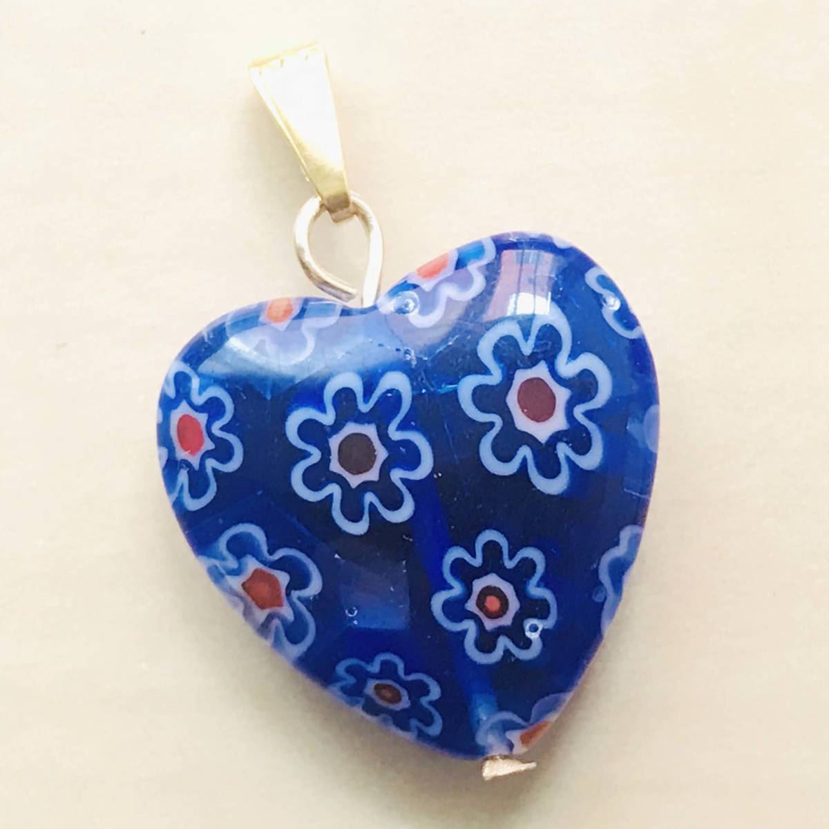保管品未使用 ベネチアングラス ガラス瑠璃 ハートのモチーフ ペンダント NO.W-17