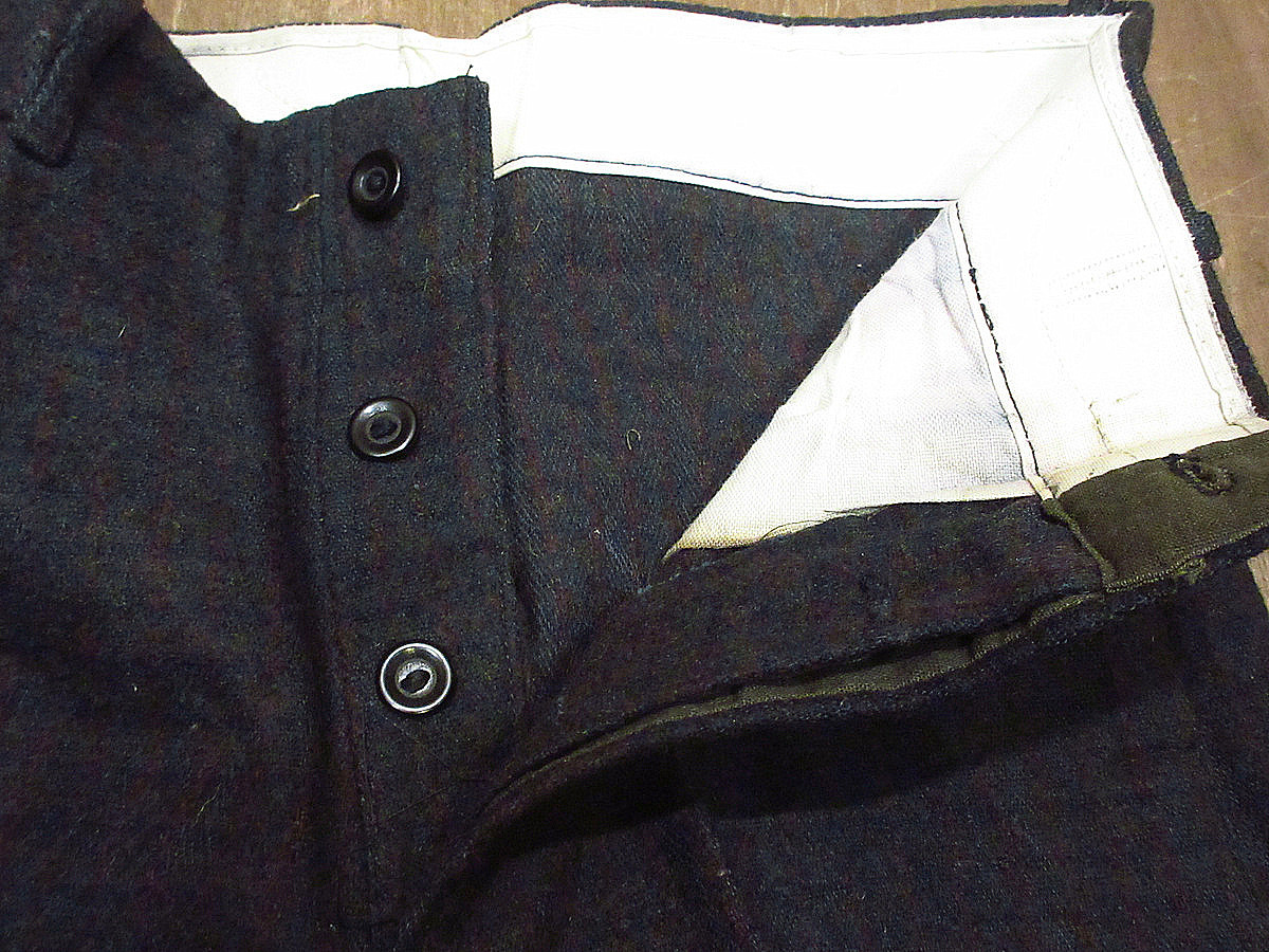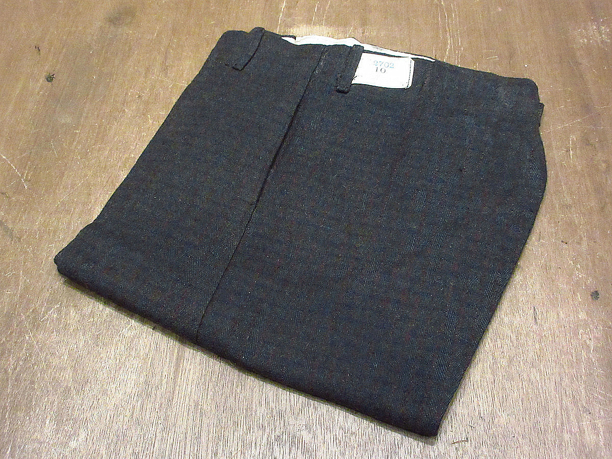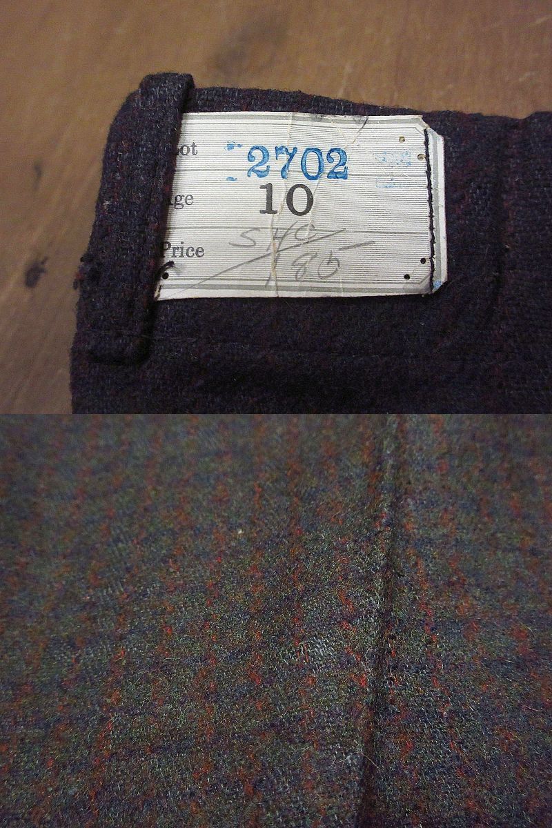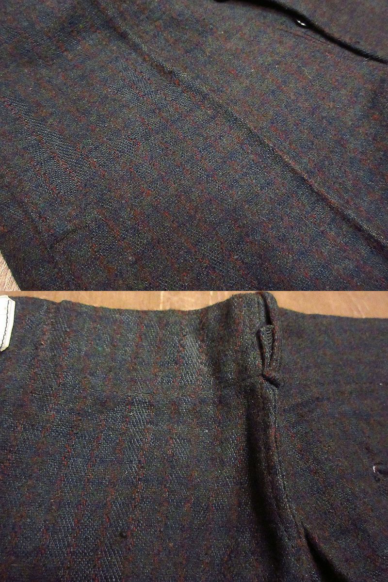 静岡県富士市にあるCOZY VINTAGEです。 海外から直接仕入れた古着、雑貨などを扱っています。 ホームページもございますので、そちらもチェックしてみてください。 https://www.used-cozy.com こちらの商品は佐川急便元払い60サイズです。 ◆サイズ◆ 表記・・・10 ウエスト・・・約63cm わたり幅・・・約26.5cm 裾幅・・・約12cm~約13.5cm 股上・・・約25cm 股下・・・約32cm 着丈・・・約54.5cm (計測箇所によって多少異なりますのでだいたいの目安としてお考えください。) ◆状態◆ 裏地に汚れがあります。 全体的に表面の毛が薄くなっています。 ダメージ、汚れが気になる方、神経質の方はご遠慮下さい。 ◆商品詳細◆ 素材は、ウールかと思います。 起毛感があります。 色は、緑、赤、紺に近い色合いです。 ボタンフライです。 ウエスト内側にボタンホールが7つあります。 裾にアジャスターボタンが2つずつ付いています。 正確な年代が分かりませんが、1920年代以前の物かと思います。 希少な非常に古い年代のデッドストックで、ビンテージらしい良い雰囲気のあるニッカーボッカーズです。 210511n4-k-sht ◆ビンテージ古着、レトロな雑貨などの卸もお気軽にご相談ください。 ◆info@used-cozy.comまでお気軽にメールくださいね!! |