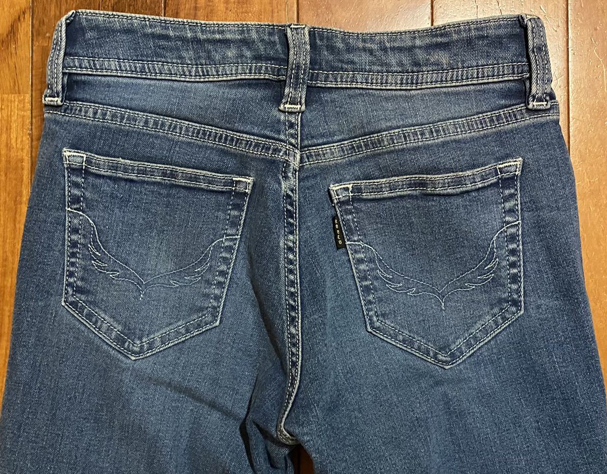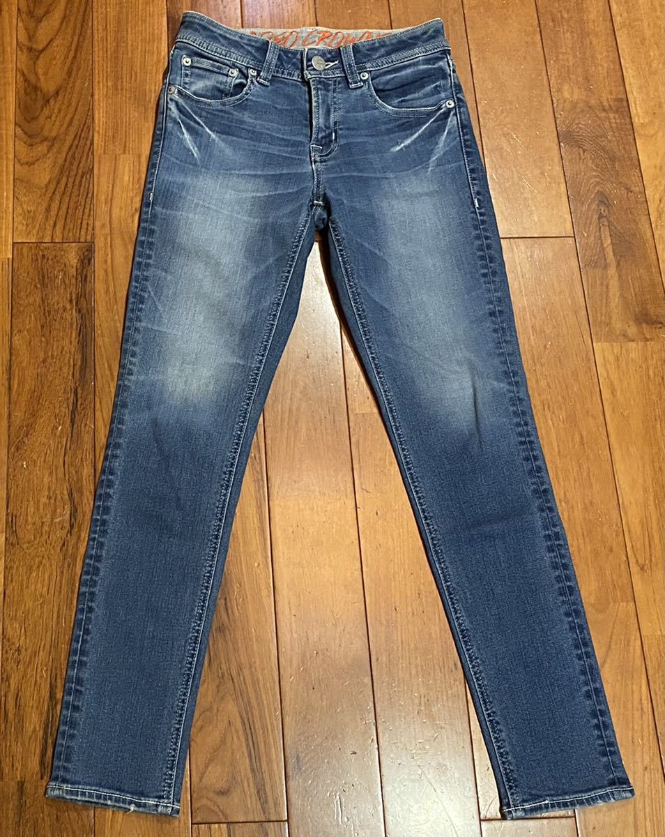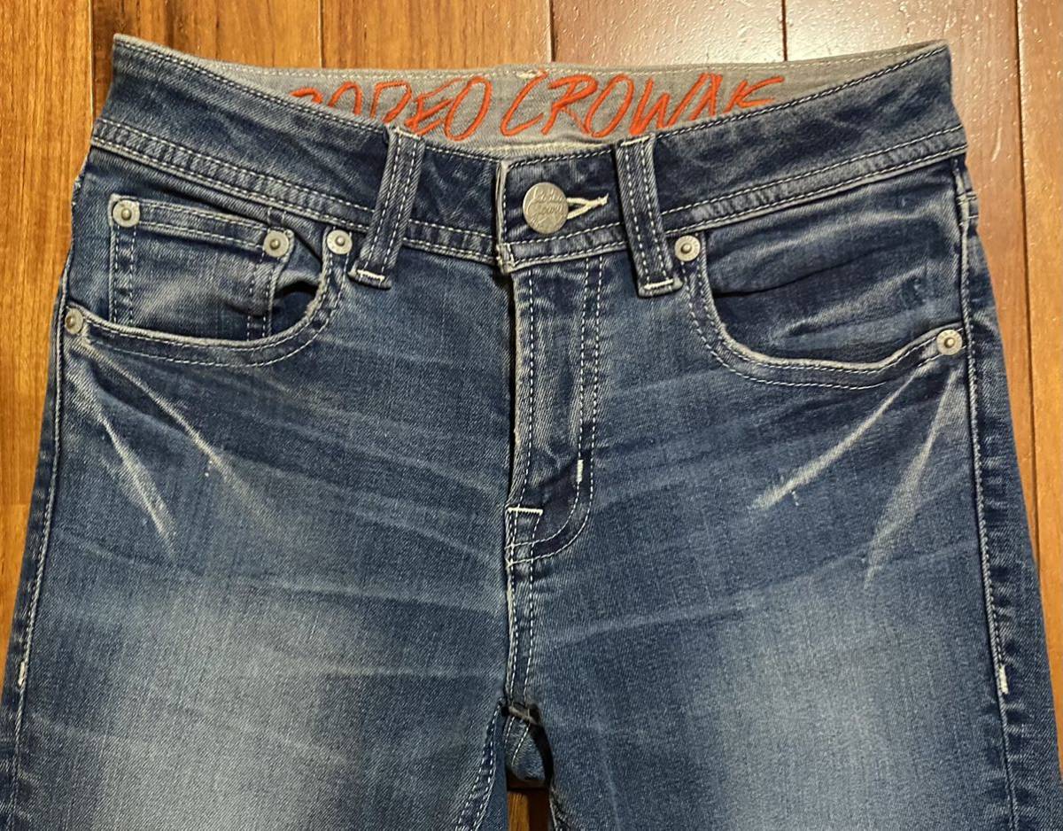ロデオクラウンズ ワイドボウルのストレッチデニム(ジーンズ)、NO.420BSR12-0530です。色はインディゴブルーです。USEDですが状態は良いです(10段階中8程度)。ジッパーフライ、チェーンステッチです。生地はストレッチ入りで綿94%、ポリエステル4%、ポリウレタン2%です。正規品です((株)バロックジャパンリミテッド、カンボジア製)。サイズはW25でウエストは重ねずに平置きで約63cm、ヒップ約82cm、股上約22cm、股下約67cm、股下15cmのふともも部分約39cm、裾まわり約24cm、重量約390gです。発送はゆうパケットポストになります。