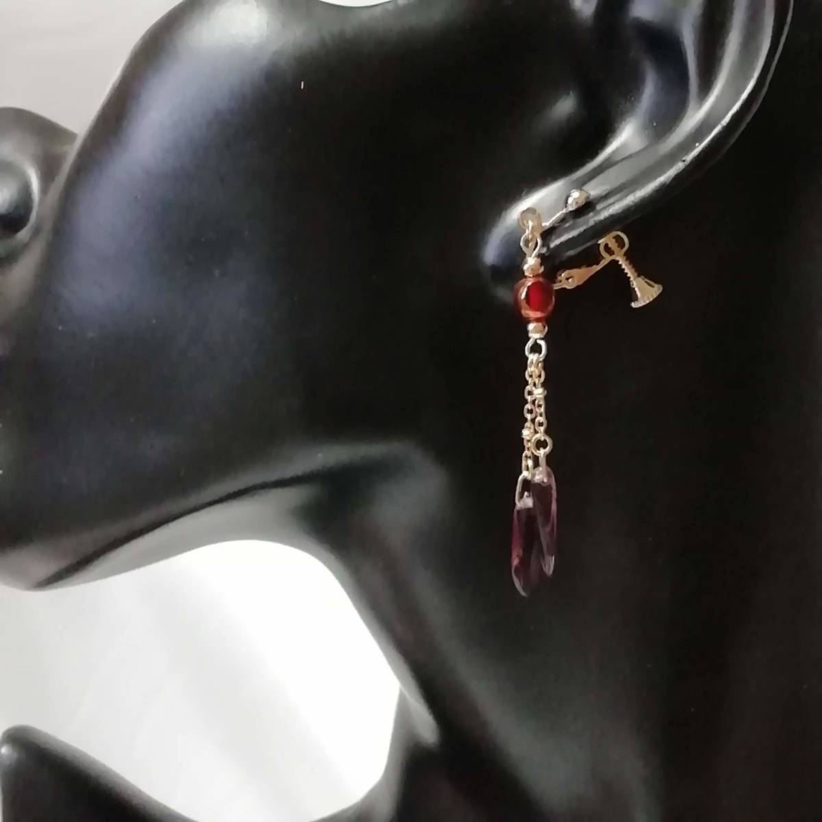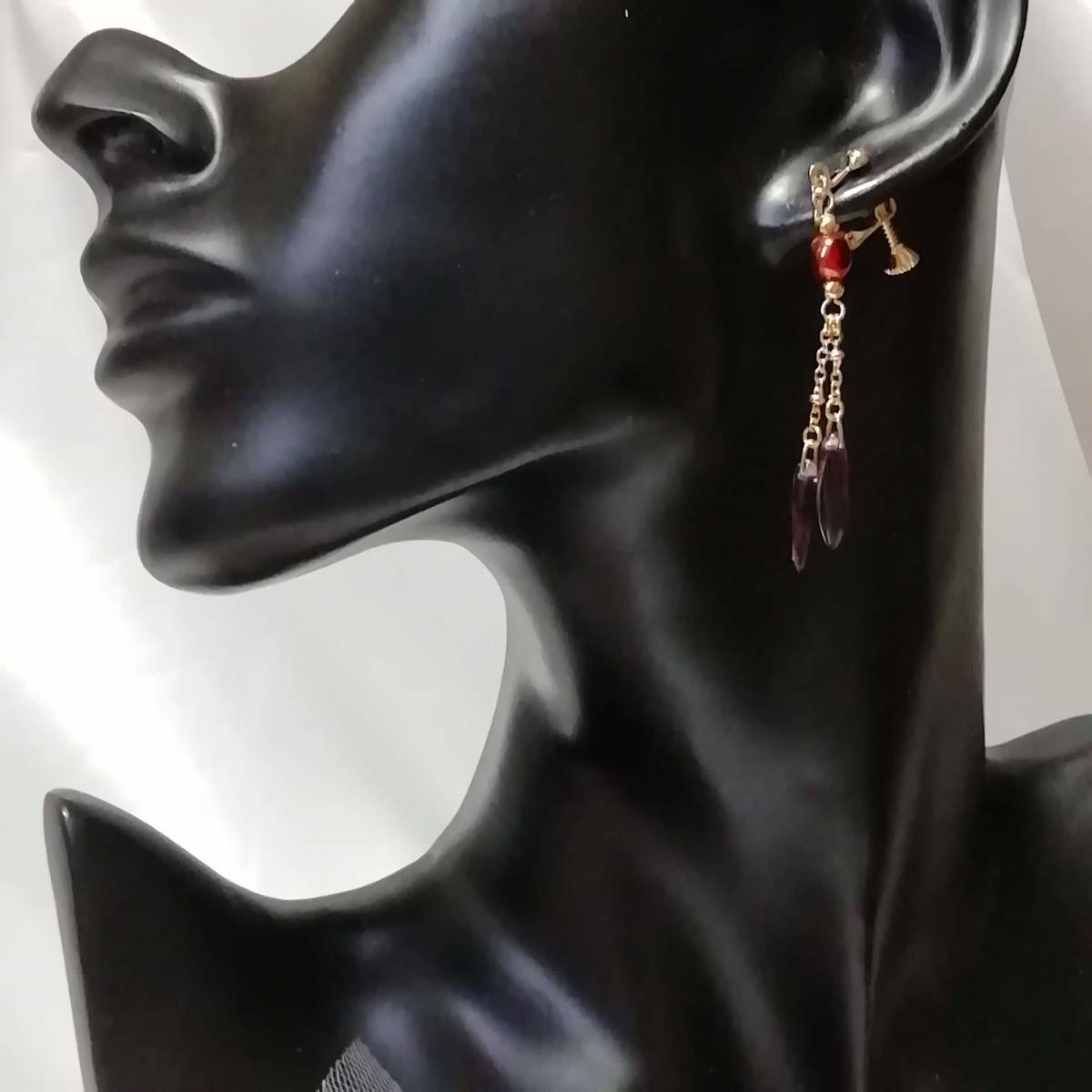 ★商品内容★ ライトシャムブロンズのハンドメイドイヤリング★チェコビーズ/ダガー/上品/シック/ゴールド/アメジスト/アンティーク/真紅/k16GP/三角形 チェコビーズダガーを贅沢に使った アンティーク調の雰囲気のイヤリングです。*・.**.・。**.・。*・**。・ トライアングルの形のライトシャムブロンズビーズに ジャラジャラと吊る下げたダガービーズを組み合わせて 落ち着きのある大人の女性らしさを印象付ています*・.**.・。**.・。*・**。・ 普段使いはもちろん、 お洒落のワンポイントにも最適です。*・**.・。**.・。*・**。・. 【素材】 チェコビーズダガーアメジスト16mmx5mm チェコビーズアンティークトライアングルライトシャムブロンズ6mm ミユキパールビーズ本金メッキ3mm k16GP玉付きチェーン カンより垂れ下がる長さは、約5.3㎝です。 Eー797 ★注意事項★ ***~ご購入前に必ずお読み下さい~*** *・*・*落札後について*・*・* *落札後4日以内にお手続き、ご連絡が無い場合は落札者都合で削除致します。 *発送日指定・ご入金の予定が1週間以上先をお考えの方は、入札の前に質問よりご連絡くださいませ。 予めご了承の上、ノークレーム・ノーリターンでお願い致します。 *・*・*商品について*・*・* *一点一点心を込めて作っておりますが、手作りなため多少の歪み等あるかもしれません。 手作りの味わいと、世界で一つだけの作品とお考えいただければ幸いです。 *デリケートな商品ですので、強く引っ張ったりすると破損する事もあります。 お取り扱いにはご注意ください。 *ご覧のPC、スマホによっては画像と実物の色味が多少異なる場合があります。 *基本イヤリング金具は跳ね上げネジ付き金具にて作成しております。 **ご希望によりピアスへの変更も承っております。 【フックピアス…無料/キャッチピアス…別途追加料金120円】 *その他…樹脂ノンホールピアス(無料)・カン付き樹脂ノンホールピアス(別途追加料金20円)にも変更をお受け致します。 ~ご注文の際にメッセージ欄よりお申し付け下さい~ 尚、金具変更のご希望が無い場合は、掲載された写真の金具にてお送り致します。 *金属アレルギーや化学物質アレルギーなどへの対応はしておりませんので、ご心配な方はご遠慮下さいますようお願い致します。 *永くご愛用頂くために、ご使用後は柔らかい布等で軽く拭いてください。 *・*・*プレゼント用梱包のご要望もお受けいたします*・*・* *その際は、梱包費用が別途で必要となりますのでご注意ください。 また、ご希望の梱包タイプによって、発送方法が変わりますので、送料が別途必要となります。 プレゼント用梱包タイプ 【袋→100円】 発送方法【クリックポスト(送料無料)】 プレゼント用梱包タイプ 【箱→200円】 発送方法【レターパックプラス(別途520円)】 袋タイプは【合計100円の追加料金】、箱タイプは【合計720円の追加料金】となります。 ◆ご希望の場合は、必ず商品ページをウォッチリストに登録した上で落札前に質問にてお問合せ下さい。◆ ◆ご希望を承り次第、一度出品を取り消し、プレゼント用梱包費用、送料などを追加した金額へ変更し、再出品致します。◆ *再出品後に再度検索して頂く手間が省けますため、プレゼント梱包をご希望の場合は必ずウォッチリストへのご登録をお願い致します。 金額変更後の再出品から3日以内に落札されなかった場合、誠に勝手ながら購入する意思がないとみなしまして、元の金額へ修正致します。 また、修正後、再度プレゼント用梱包のご希望のお問い合わせを頂きましても、お断りをさせていただきますのでご注意ください。 ご不明な点がございましたら、落札前に質問よりお願い致します。 ***ご質問について*** *ご購入前にお願い致します。 日中は仕事をしておりますので、ご返事が直ぐに出来ない場合がございます。 出来る限り早い対応を心がけますが、ご了承ください。 また、発送までには、お振込み確認後、翌日の発送を心がけておりますが、仕事の都合により2~3日程かかる場合がございます。(その際にはナビにてご連絡いたします) お急ぎの場合は、極力対応いたしますが、場合によっては対応致しかねる事もあります。ご了承下さいませ。 | |||