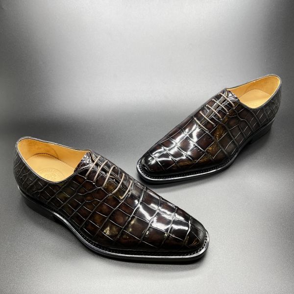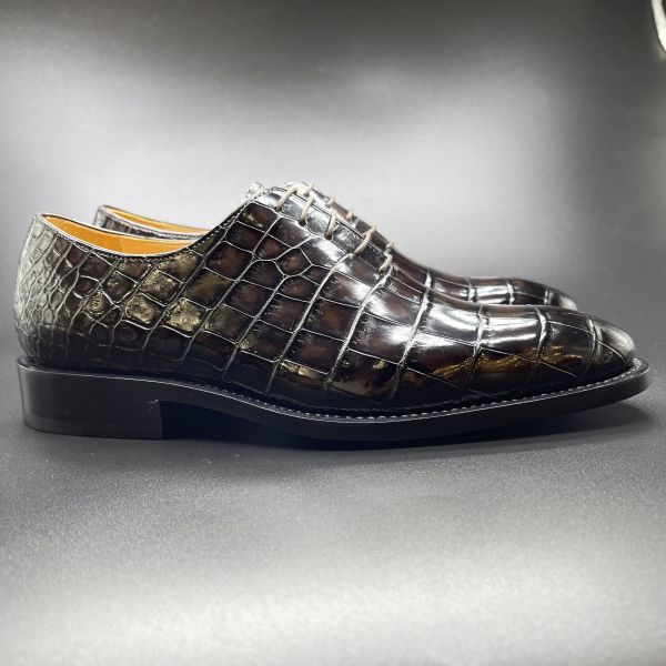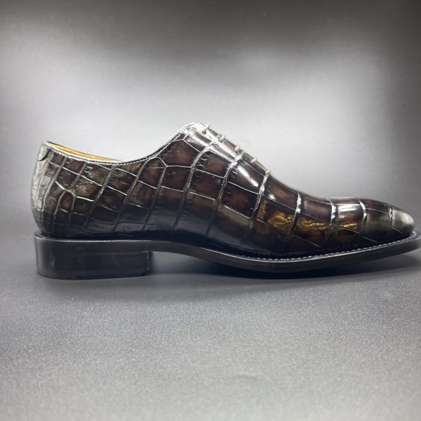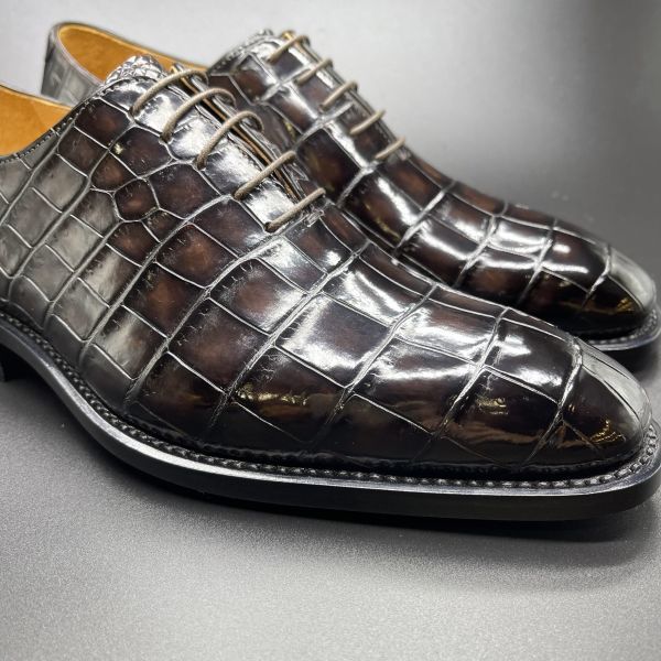 ワニ革保証 手染め仕上げ ガジュマルシューズ 実物写真 |