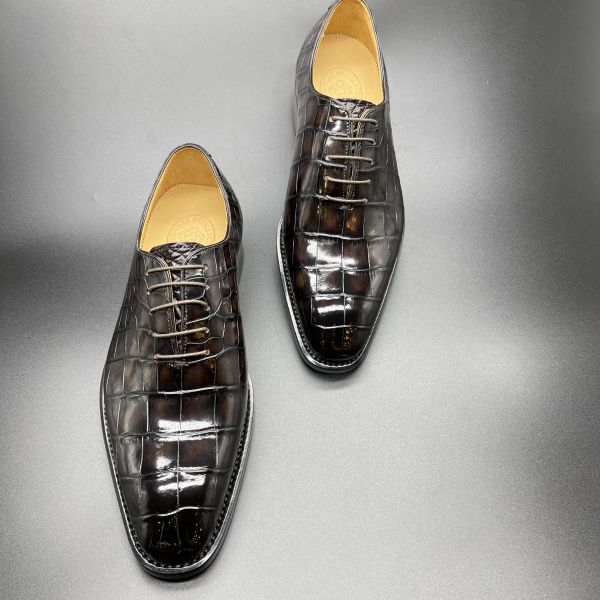 ワニ革保証 手染め仕上げ ガジュマルシューズ 実物写真 |