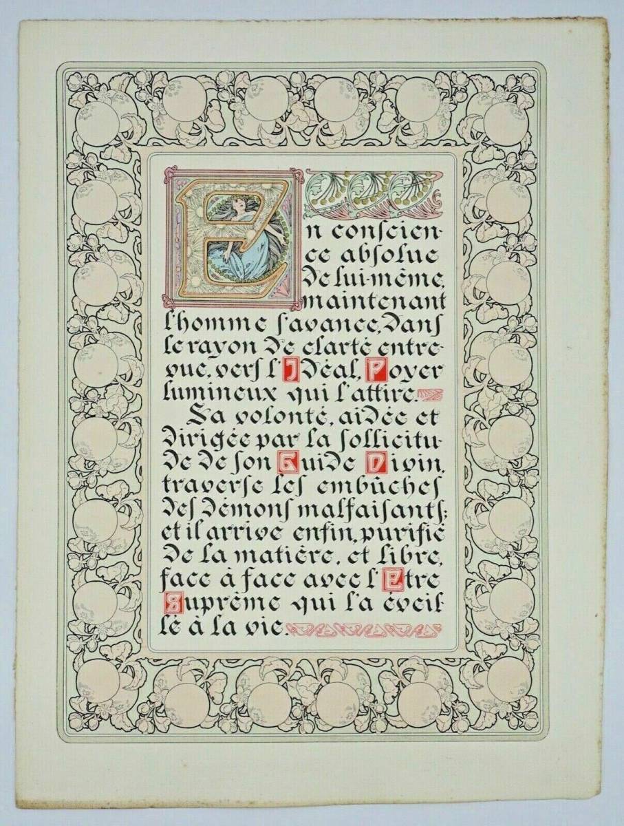 | アルフォンス・ミュシャの代表作の一つ「主の祈り Le Pater」の 祈祷文の解説がフランス語で書かれたページです。 1899年作、オリジナルリトグラフで、シートです。 祈祷文は、「我らをこころみにあわせず、悪より救いだしたまえ」です。 サイズ:40×30㎝ | |||