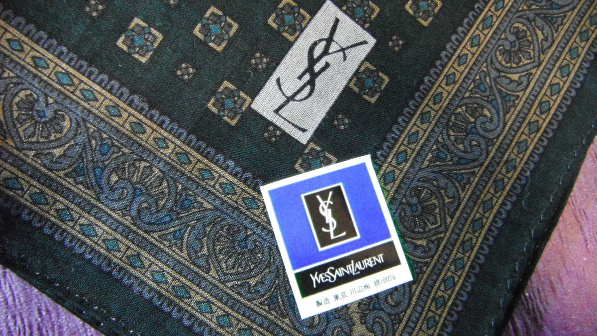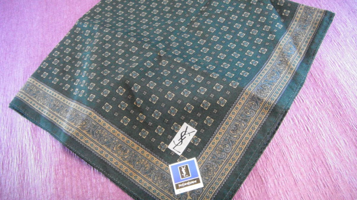 未使用 YSL イヴサンローラン メンズ お洒落! ハンカチ 46x47cm 紳士 ブラック / 川辺 カラー:ブラックxブラウンxネイビー 素材:綿100% 川辺株式会社  ノークレームノーリターンでご入札お願いします。送料別途発送はヤフネコ!ネコポスを予定しております。お支払方法はヤフーかんたん決済、よろしくお願いいたします。