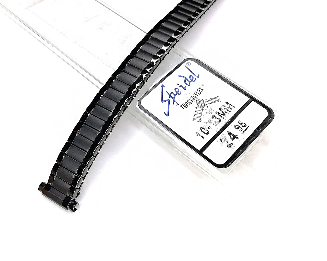 【Speidel】 珍しい黒色 レディースウォッチブレス 伸縮タイプ 女性用腕時計バンド アンティークウォッチ/ビンテージウォッチに LB849