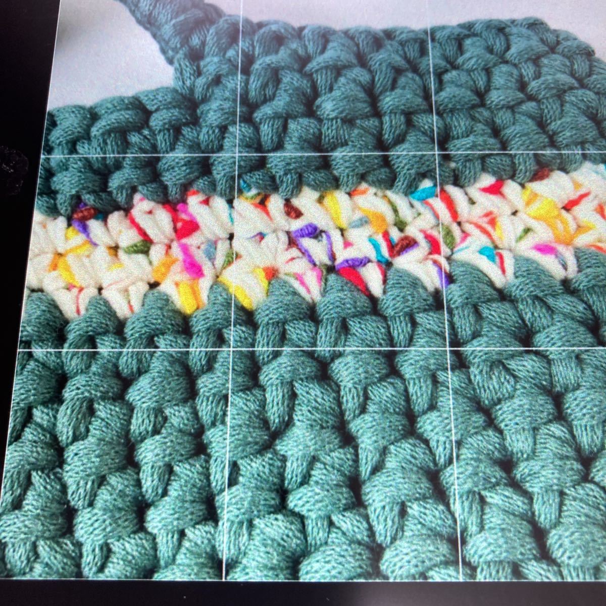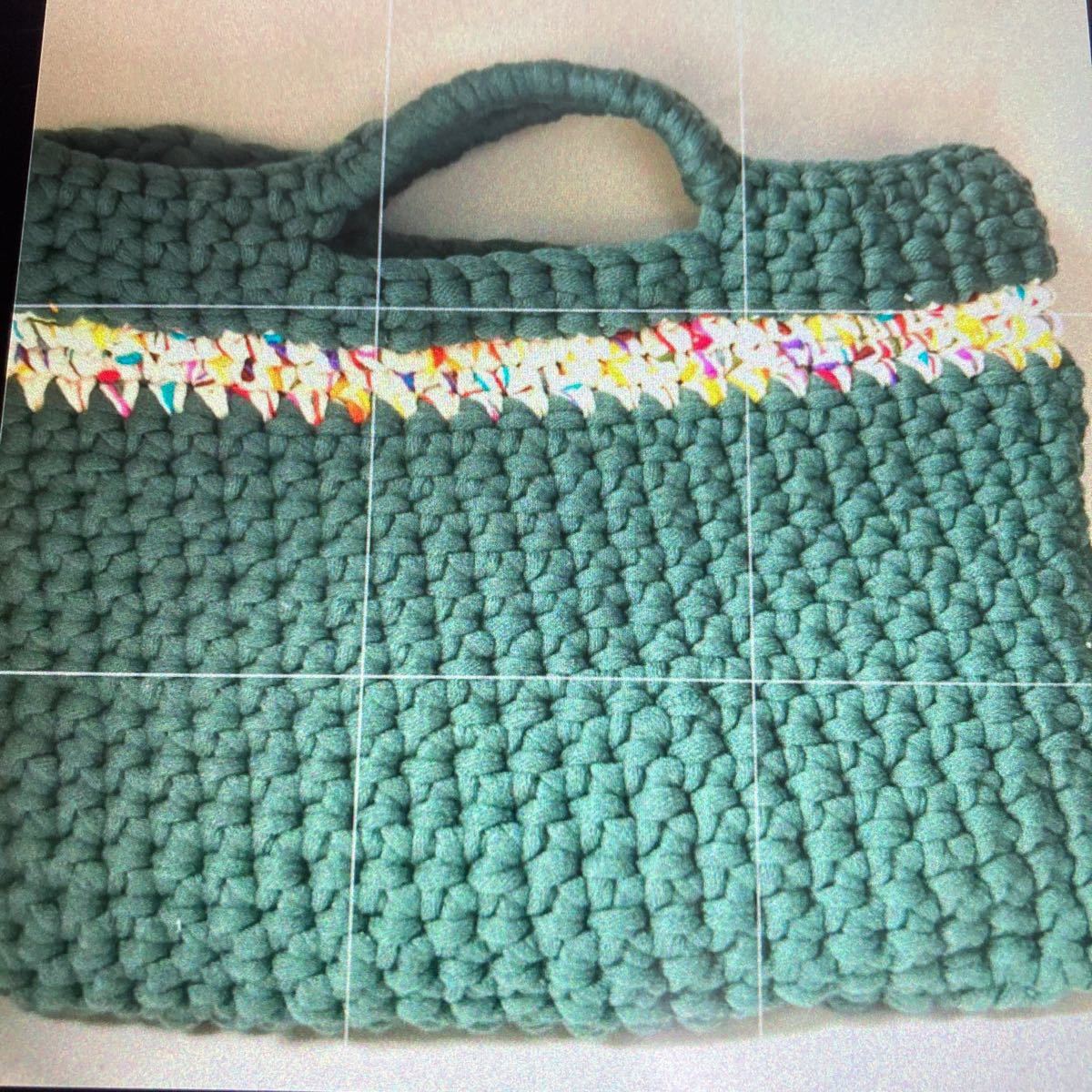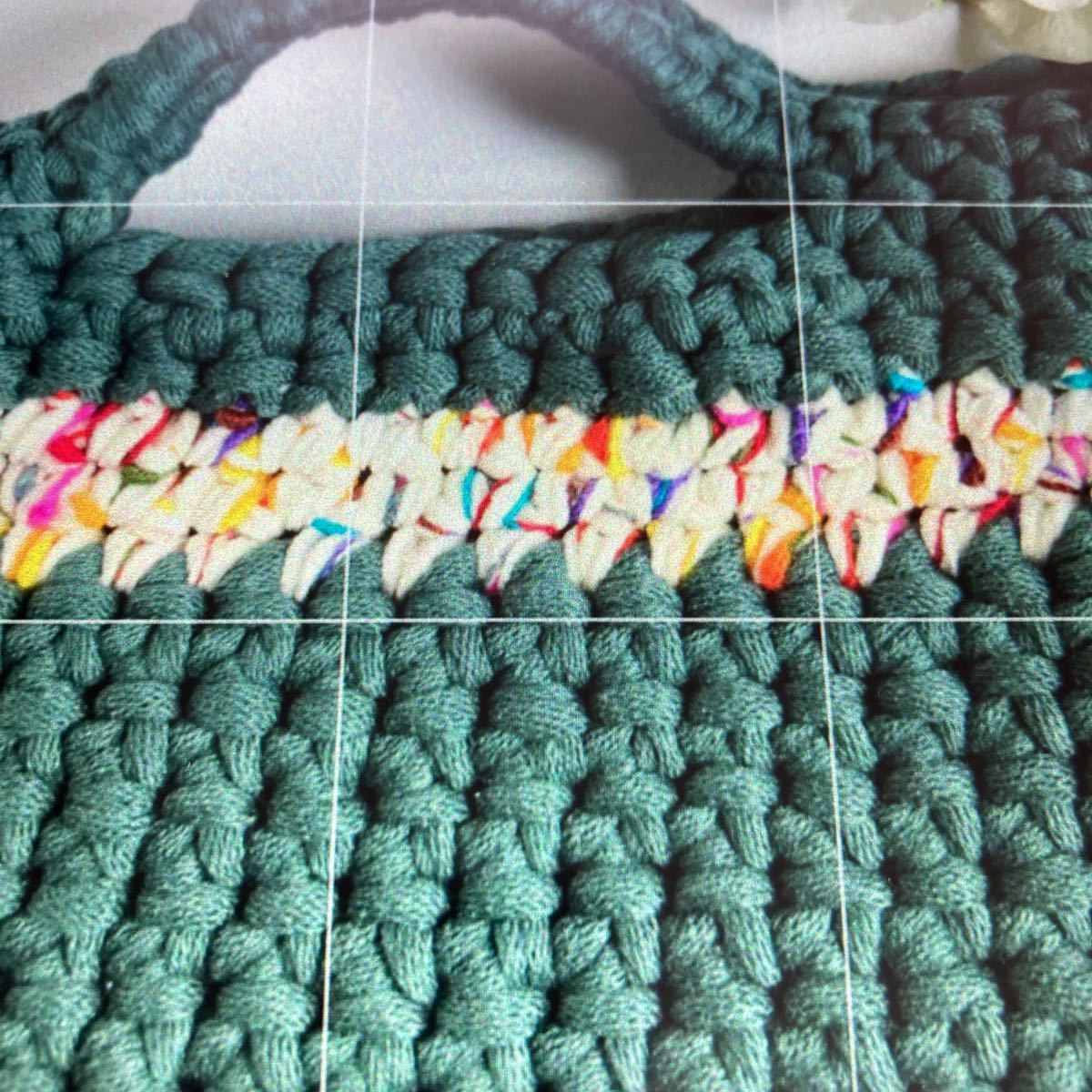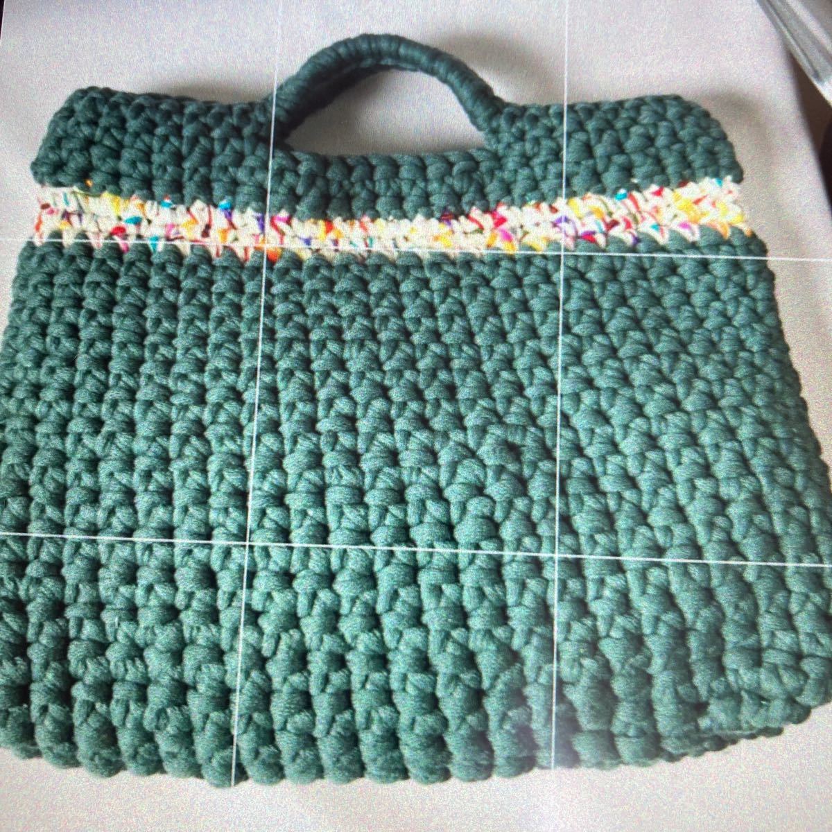 今、流行りのリサイクルヤーンバッグですがちょっと大人し目の落ち着いた綺麗な色にしてみました。