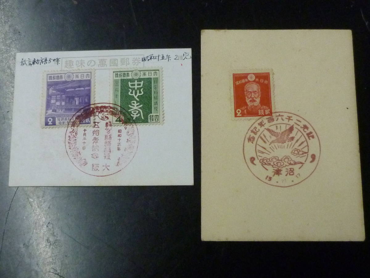 21EA P 日本切手 №B 1940年 教育語50年 2種完貼・他 特印付 計2点