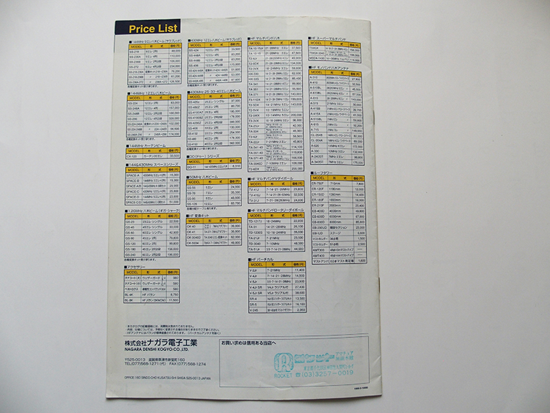 【カタログのみ】 NAGARA ANTENNA & ACCESORIES CATALOG No.99 / ナガラ アンテナカタログ (1999年3月)