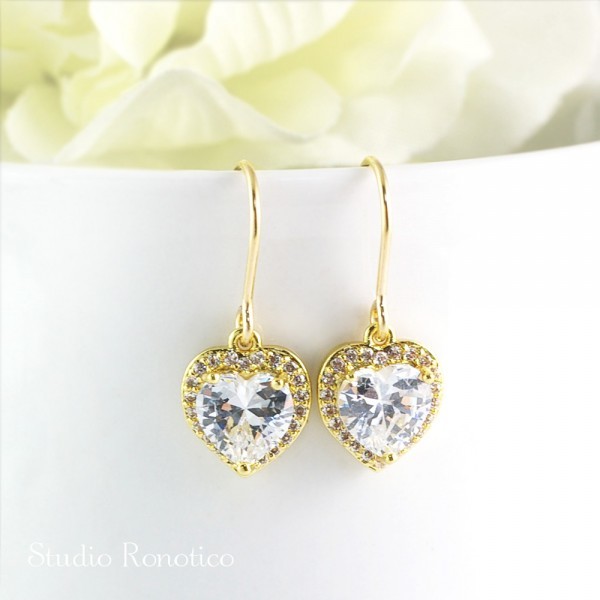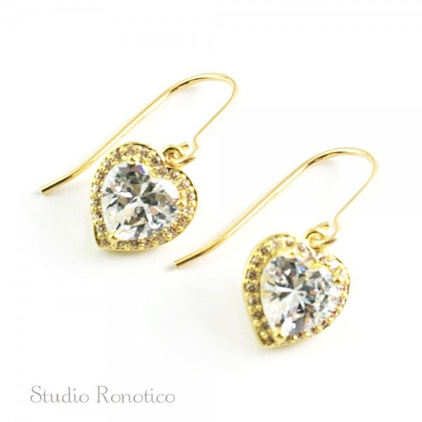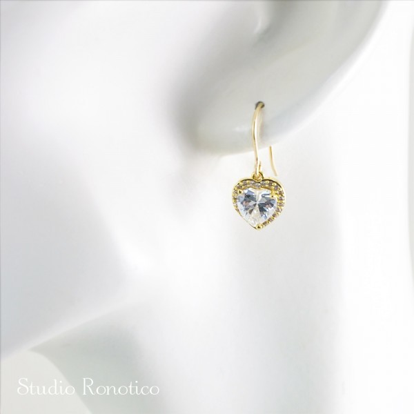 ハートモチースのジルコニアが眩い輝きのシンプルなピアス、イヤリングです。