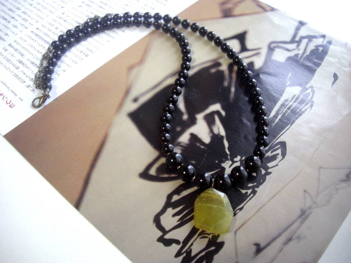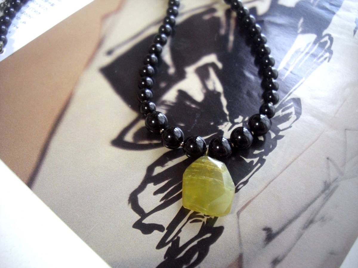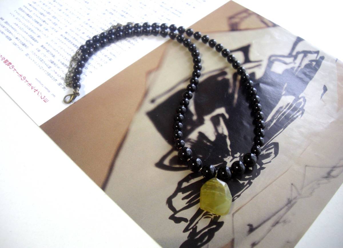 着ける幸せ・・シリーズです♪個性という魔法・・漆黒のオニキスにシックなイエローオパールを合わせた大人色のネックレスです♪繊細にさ りげなく華やかな表情です♪6ミリから8ミリまで丸玉のオニキスに20×18ミリ位のラフカットのイエローオパールを合わせました♪長さは50センチ+アジャスター12センチで最長62センチ位です♪お揃いのブレスレットも出品しています ♪♪シンプルで飽きのこないいつまでも着けられるデザインを考えて作りま した!ハンドメイドをご理解頂いてノークレーム、ノーリターンでお願いします