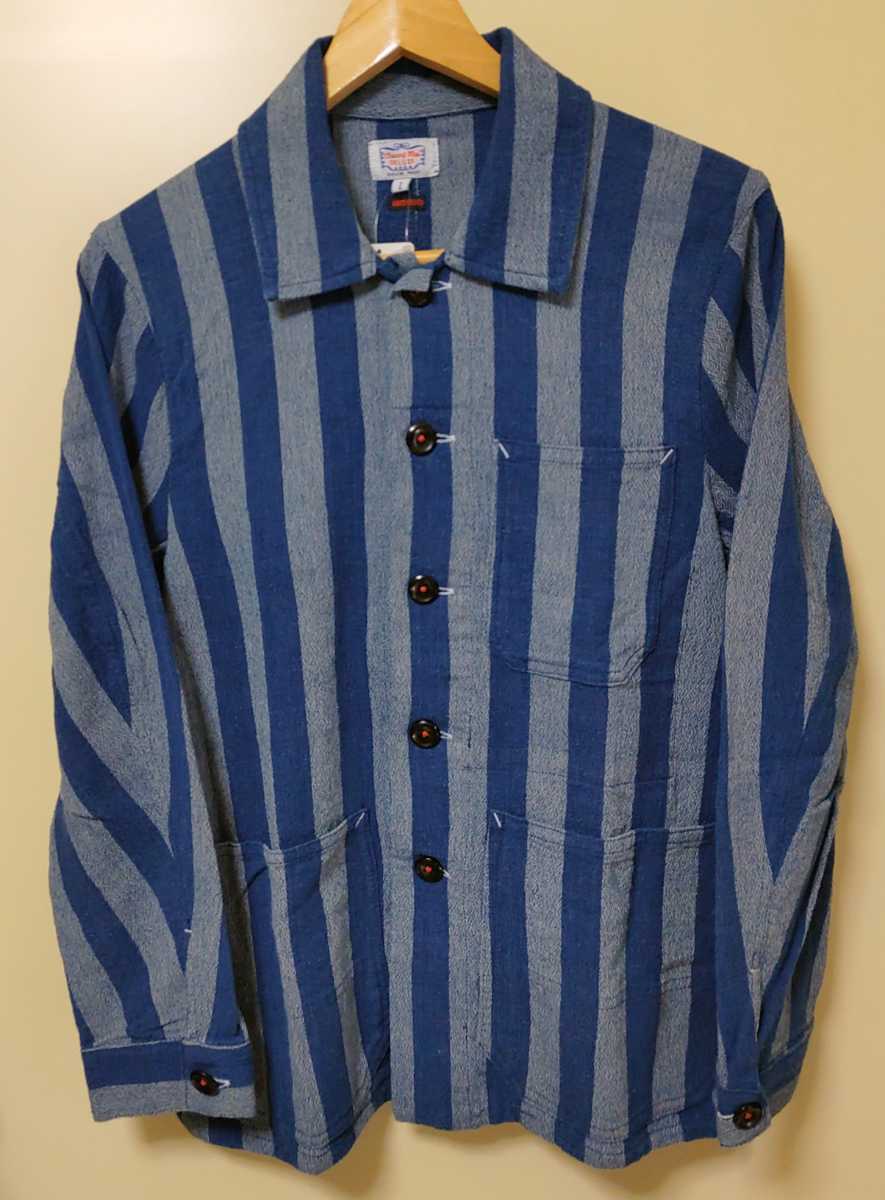 新品 GAIJIN MADE ガイジンメイド 1 インディゴ染め SストライプカバーオールChiangMai DELUXEジャケットBLUE BLUEブルーブルーOKURAオクラ