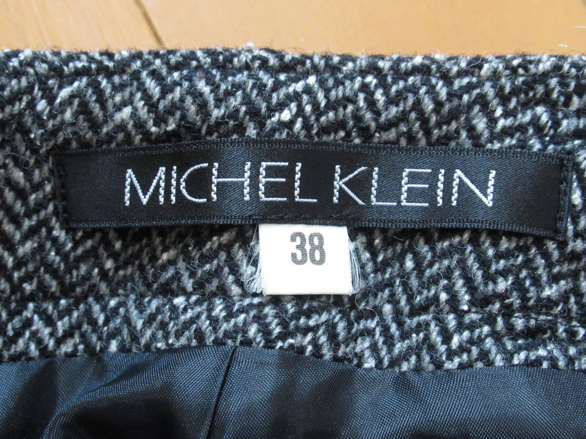 美品 シルク混 上質ウールの暖かいツイードパンツ グレー サイズ38(9号M相当)MICHEL KLEIN ミッシェルクラン(イトキン)です。