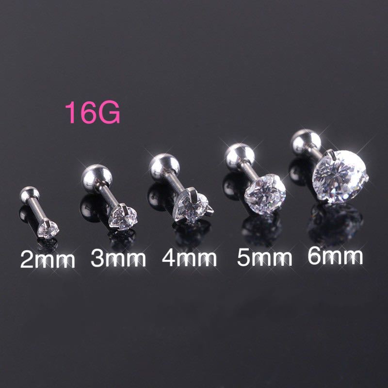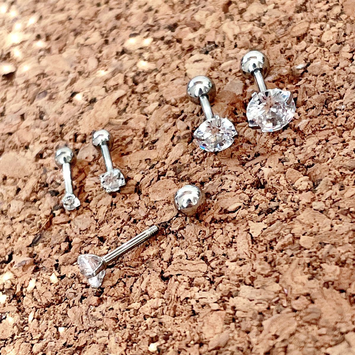 キュービックジルコニアが輝くストレートバーベル。立爪のゴージャスなデザインが顔周りを華やかに演出してくれるアイテムです♪サージカルステンレス製だから、金属アレルギーの方にも安心してご使用いただけます。