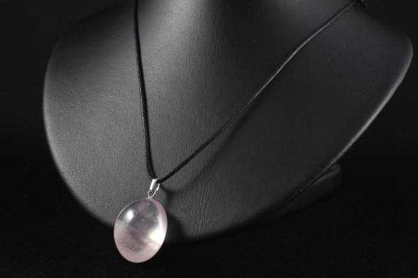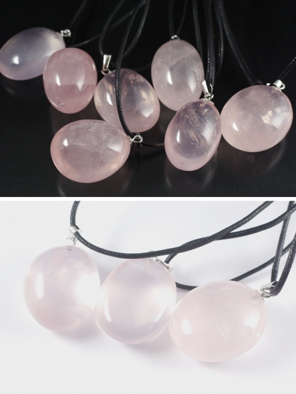 コロンとした丸みがかわいいローズクォーツ。ツルツル肌触りも良いです。