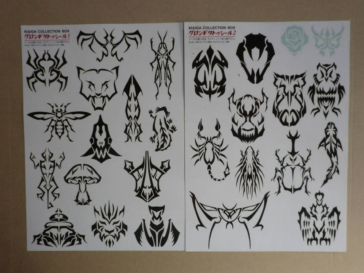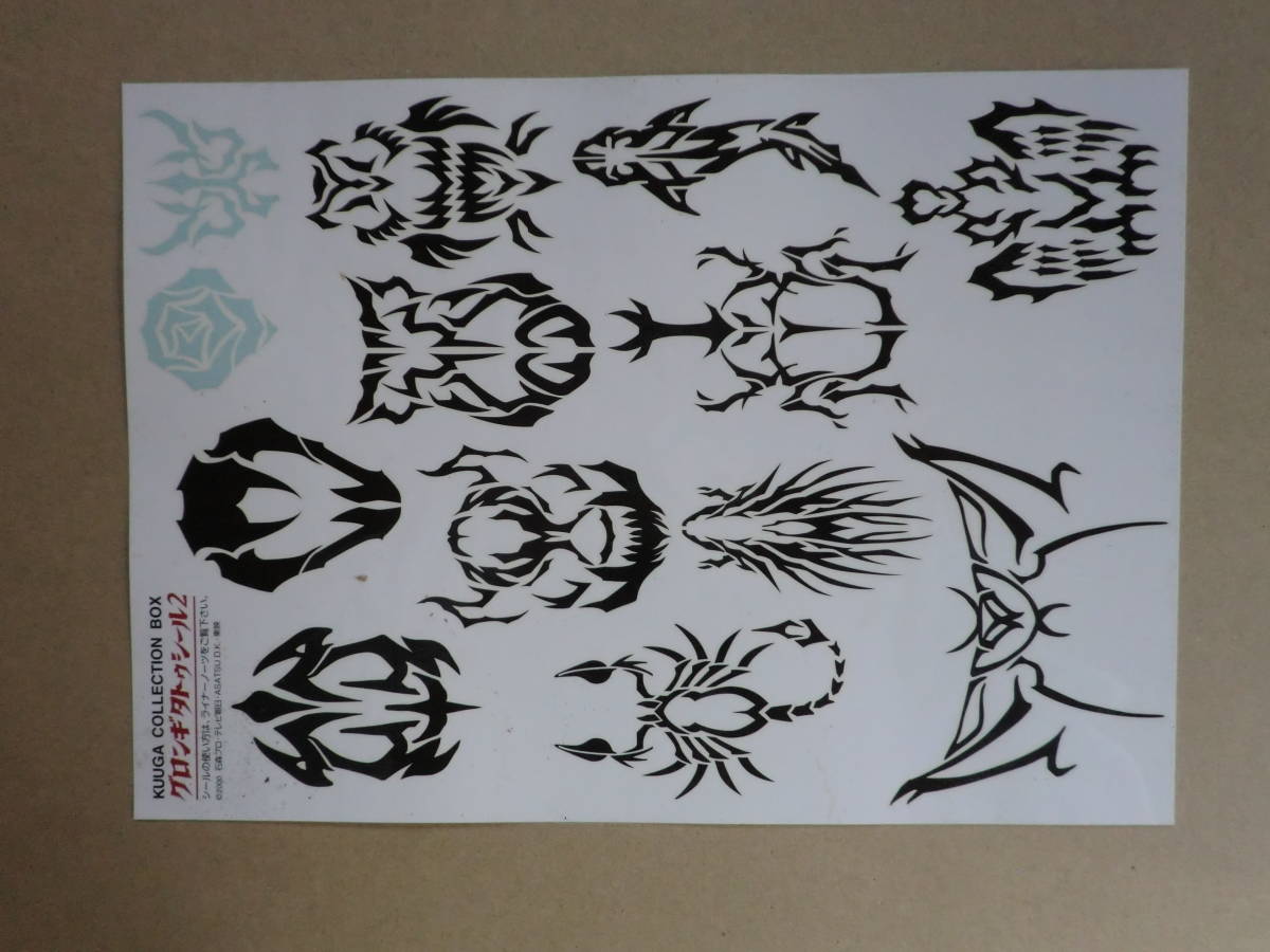 商品説明; ★仮面ライダークウガ・グロンギ・タトゥシール2枚セット!(KUUGA・COLLECTON・BOX) ★非売品・オリジナル封筒入り ★状態<未使用品・NO2上部にヨゴレあり<写真参照 |