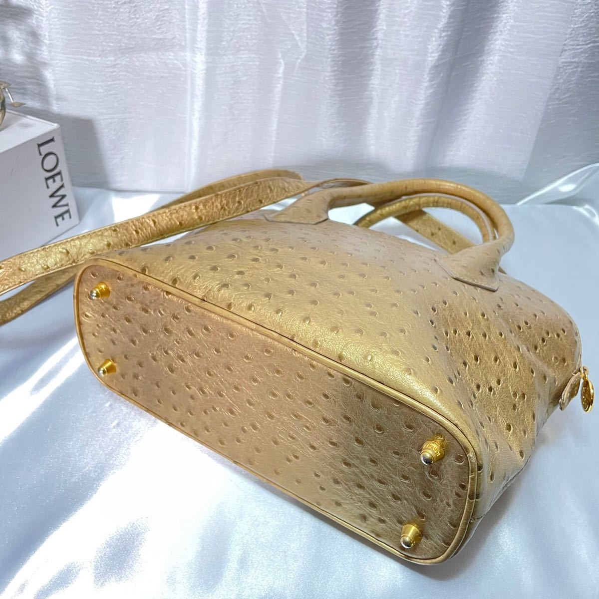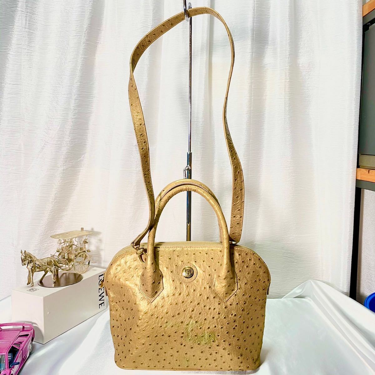 シャンパンゴールドの色あい、オーストリッチで作られた高級感あふれる一品になります。