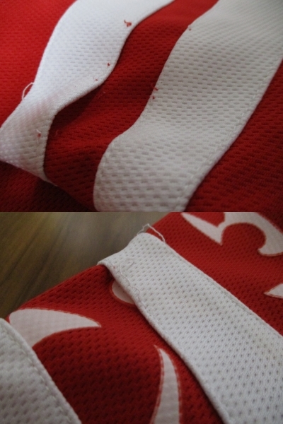 商品説明 | ●自己紹介欄ご覧ください。 ●サイズ:L ●実寸(素人採寸になりますので、多少の誤差はご了承下さい):着丈(背面襟下~裾):約74cm、身幅(脇下):約59cm、裄丈(背面襟元中央から袖先まで):約50cm ●カラー:レッド×ホワイト ●素材:ポリエステル ●正規品 ●中古品です。着用に伴う使用感、袖ラインの一部ステッチほつれがございますが、ご使用に問題となる大きなダメージはございません。その他状態等は画像でご確認ください。 ●自己紹介、注意事項をご覧の上、納得し、画像、商品説明で商品を理解できる方のみご検討ください。中古、年代物古着に理解のない方の入札はお断りします。 ●1220 | |