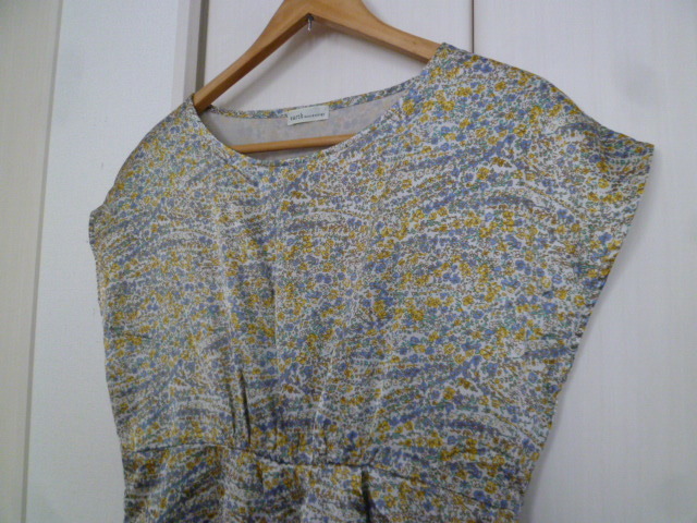 earth music&ecology/アースミュージック&エコロジー△小花柄サテン調チュニックワンピース/クロスカンパニー半袖膝丈△OP122