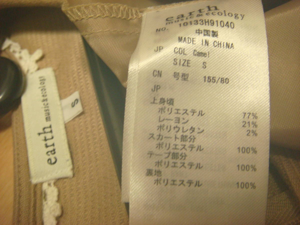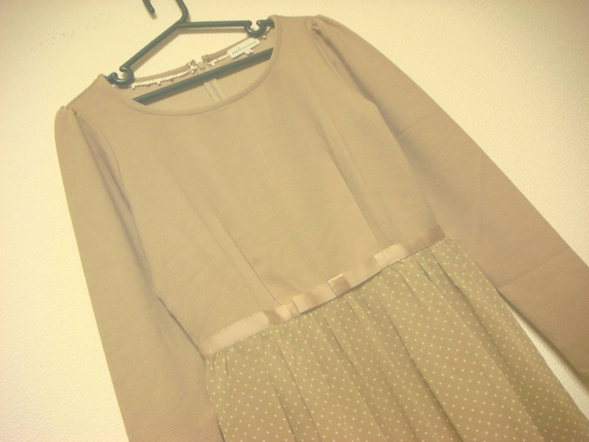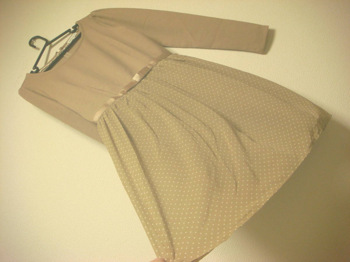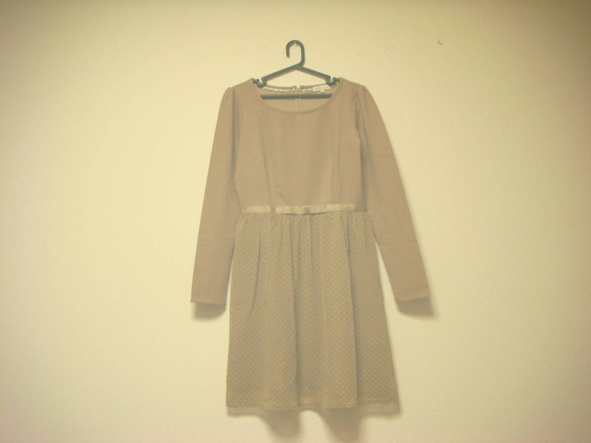 アースミュージック&エコロジー おリボン付き ドット柄切り替え ワンピース 美品 キャメル系 S