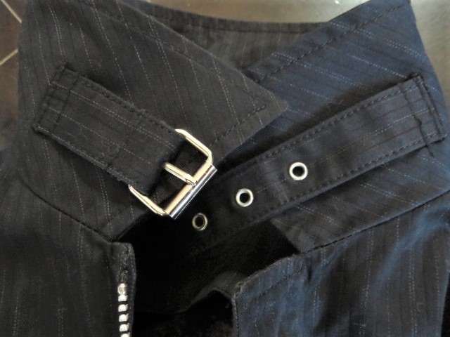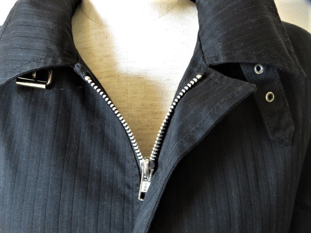 【K.T】キヨコ タカセのライナー付き高級コート、お色は黒ストライプ、やや光沢ある上質素材です。