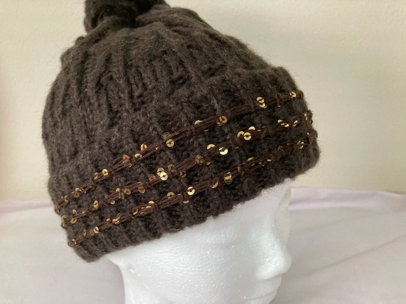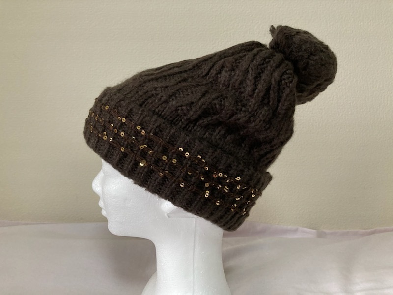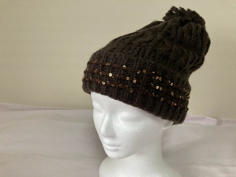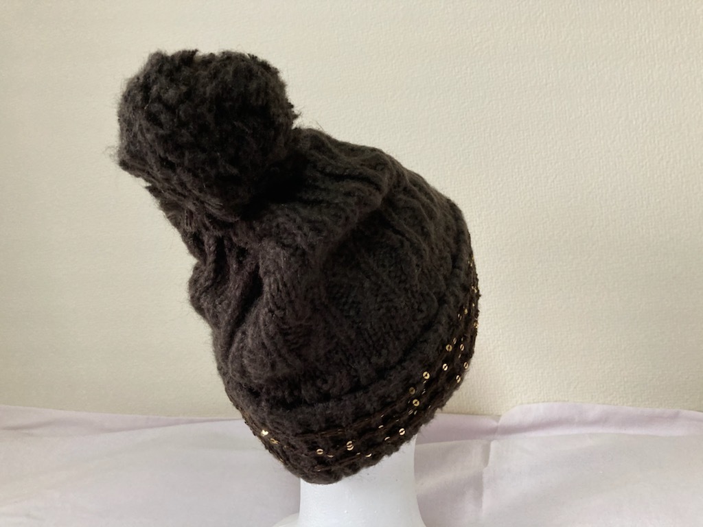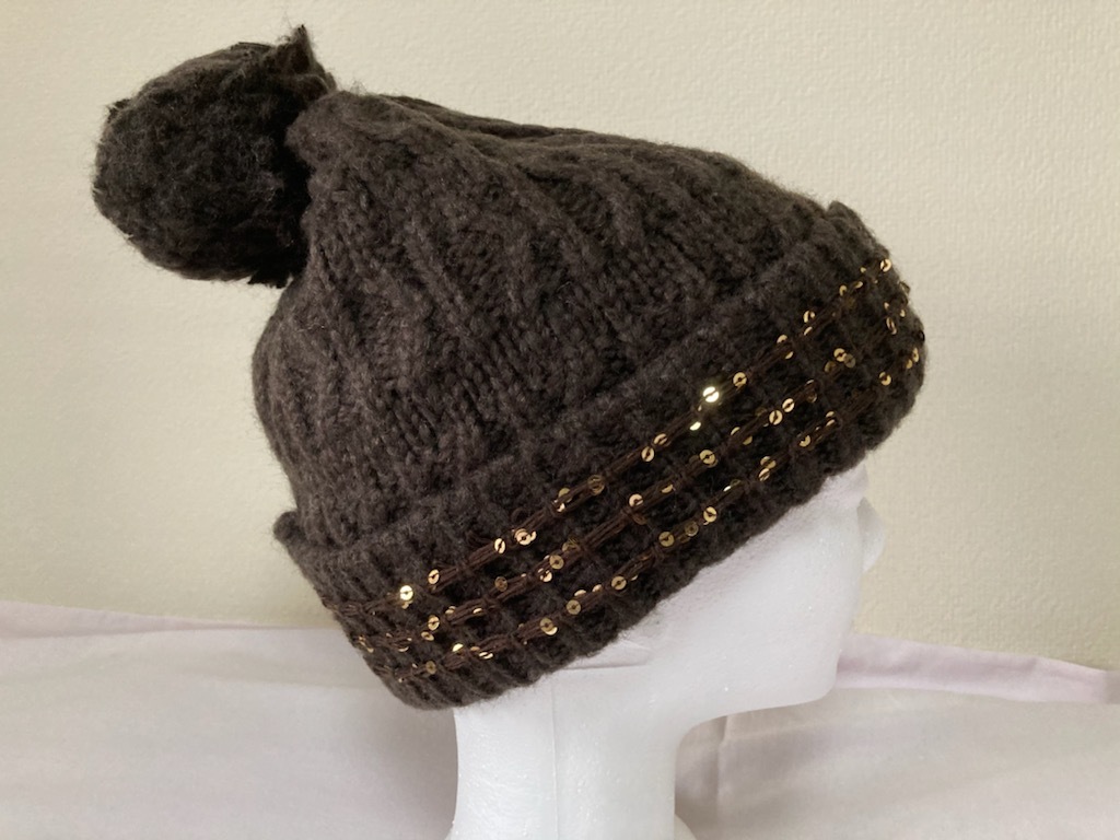 ニット帽 ダークブラウン(女性用)(スパンコールデザイン)(冬)