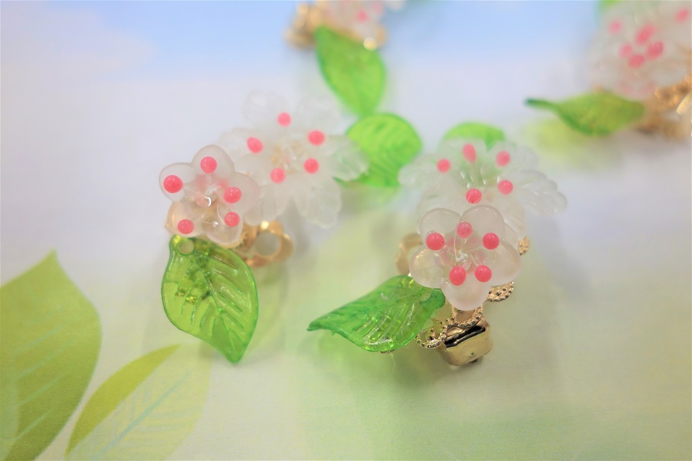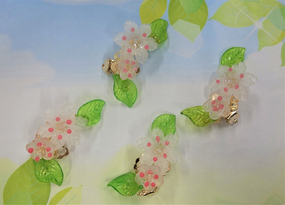 【アクリルフラワー/イヤリング/春の可憐な花】送料無料/ハンドメイドアクセサリー