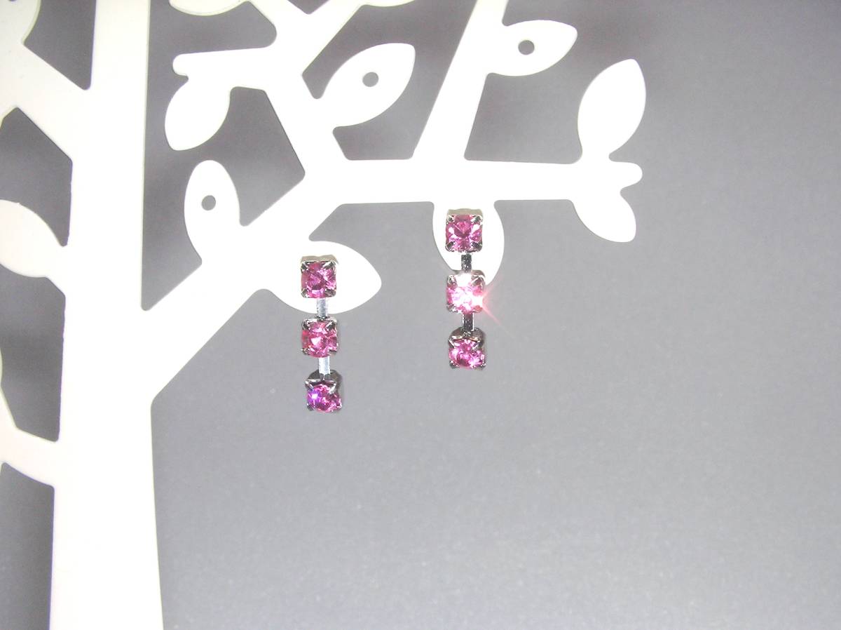 380*ラインストーン ピンク 大人カジュアル ピアス 検3連 連爪チェーン ドレッシー キラキラ かわいい ガーリー お出かけ