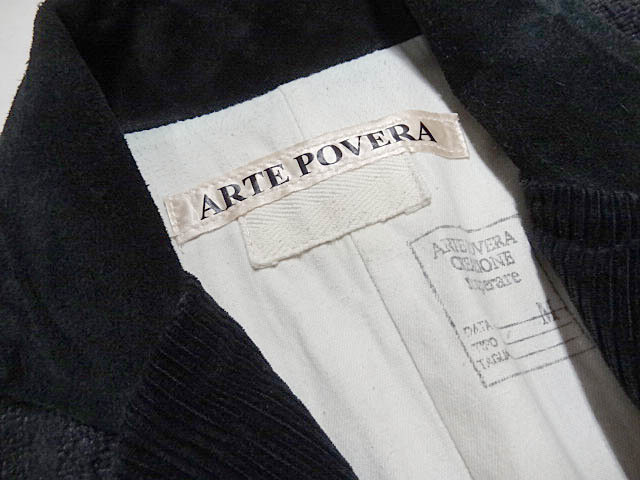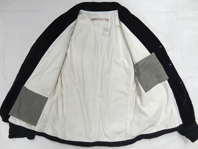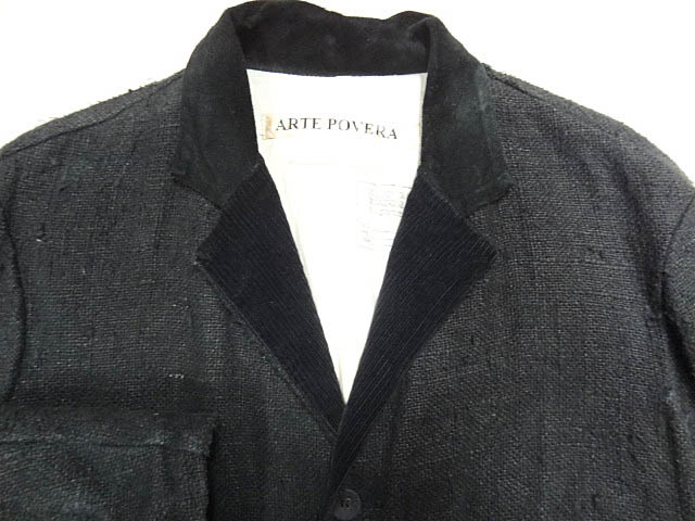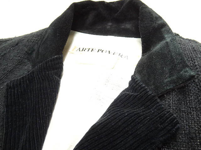 ARTE POVERA アルテポーヴェラ 黒 ブラック ジュート スエード コーデュロイ 素材ミックス デザイン テーラード ジャケット 麻 リネン Sz M