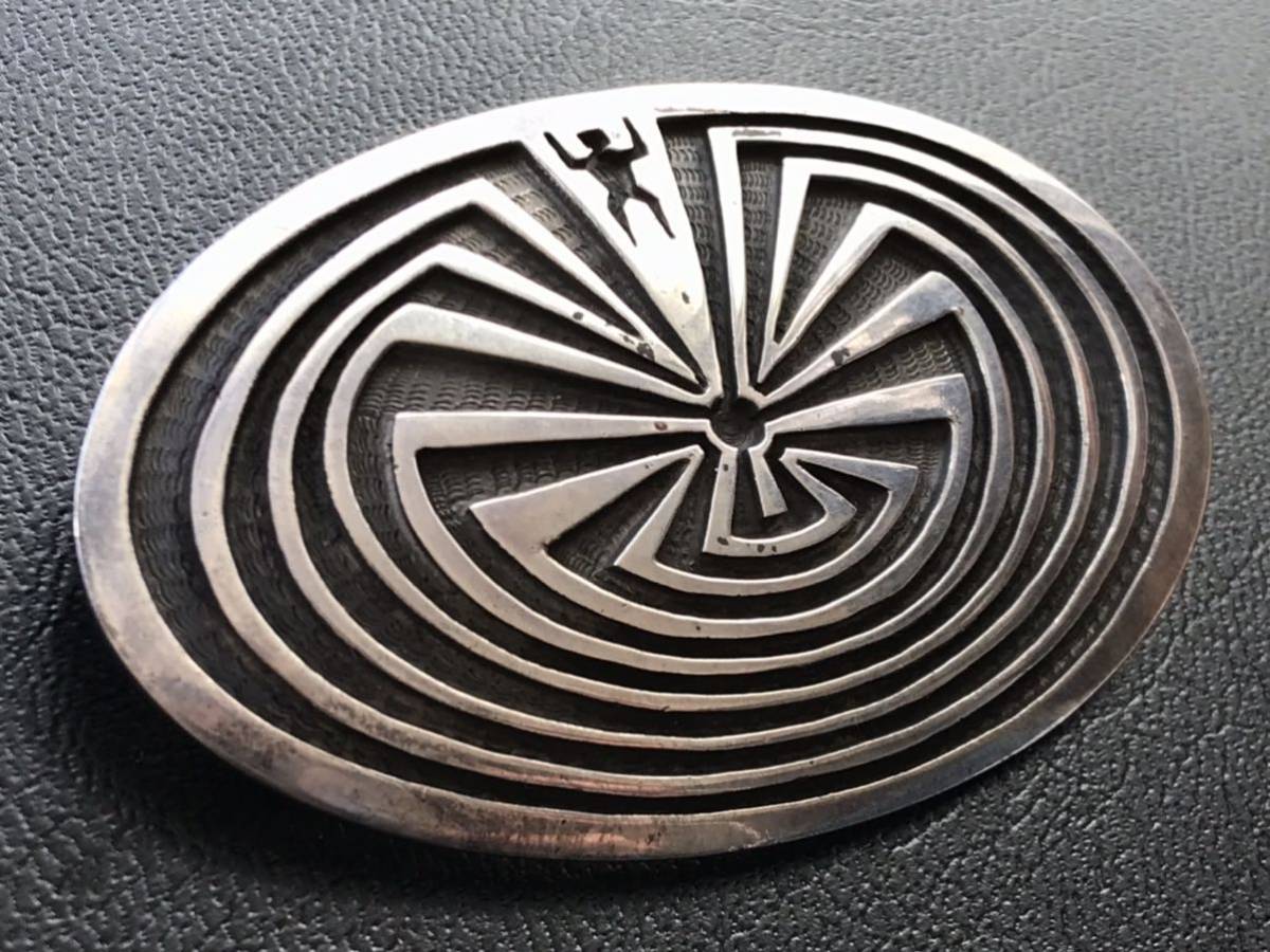 こちらの作品は彼の代表的なモチーフであるメイズを用いて制作されており、もともとはスモールサイズのバックルをピンズにリメイクした作品になります。