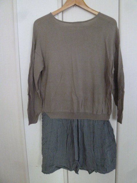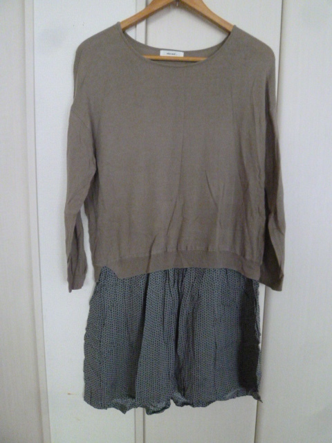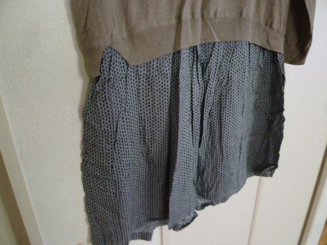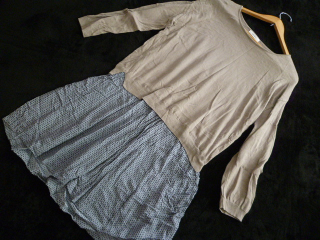 niko and.../ニコアンド○ベージュニット四角模様グレースカート異素材ドッキングワンピース/チュニック重ね着膝丈トリニティアーツ○OP123