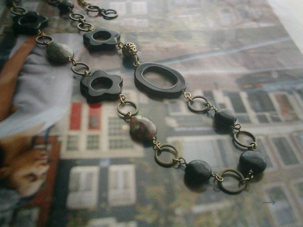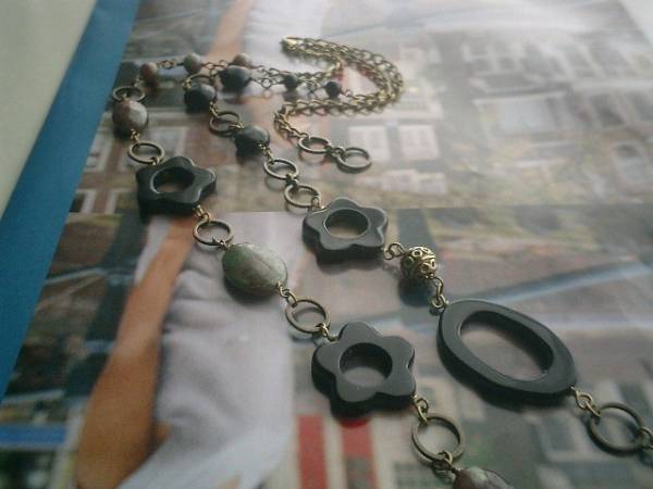 ガラスの靴の女の子・・シリーズです♪お花のオニキスとグリーンガーネットのシックなネックレスです♪黒とダークグリーンでまとめてキュートモダンしています♪オニキスは6ミリの丸玉、10ミリのコイン、20ミリのフラワーリング、20×30ミリ位のリングなど大きさ違い、デザイン違いです♪6ミリの丸玉や大きさ違いのフラットオーバルのグリーンガーネットやデザインメタルやデザインチェーンを合わせて可憐な表情です♪長さは全長83センチ位で調節自由です♪2連にされても可愛いです♪お揃いのブレスレットやピアスも出品しています♪シンプルで飽きのこないいつまでも着けられるデザインを考えて作りました!ハンドメイドをご理解頂いてノークレーム、ノーリターンでお願いします