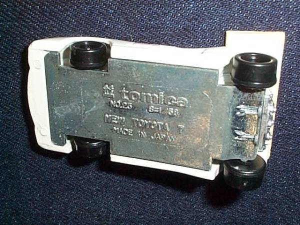 未使用品で箱なし状態で購入した物です。箱なしです。汚れ、チップ、退色があります。退色は車に貼られてシールの文字、色が退色して白くなっています。リヤのウイング部分が日焼けで変色してます。日本製です。車の底面にトミカマーク、tomica、№23、S=1/58、NEW TOYОTA 7、MADE IN JAPAN刻印があります。写真、質問等で判断お願いいたします。落札後はノークレーム、ノーリターンでお願いいたします。発送は日本郵便のレターパック プラス(¥600円)にての発送です。落札金額+¥600円です。保険付き希望の場合ゆうパックにて発送します。